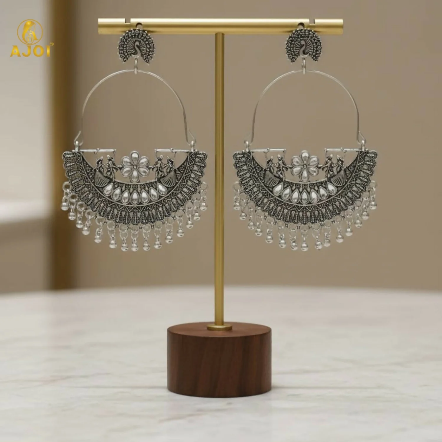 Delicate dangling beads at the base add graceful movement, enhancing their dramatic appeal. Lightweight yet striking, these earrings are comfortable for extended wear while instantly elevating both ethnic and fusion outfits. Perfect for festive occasions, cultural events, parties, and contemporary styling, these earrings blend traditional artistry with modern elegance.