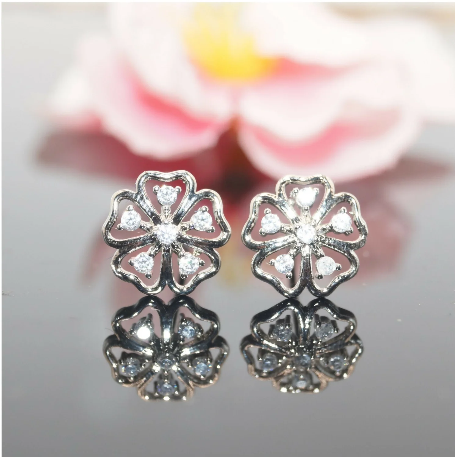 Elevate your style effortlessly with these shimmering floral studs—a timeless piece you'll treasure.