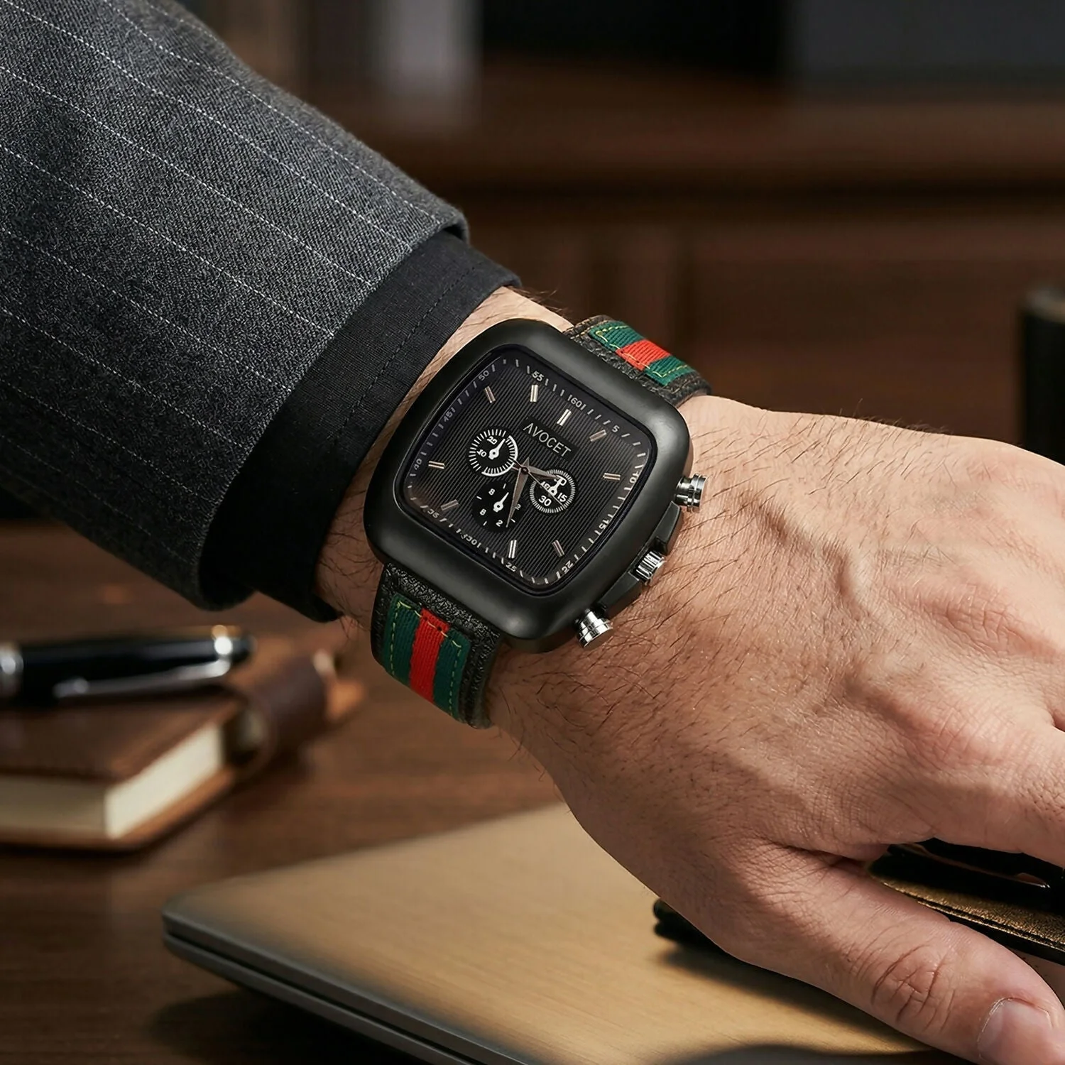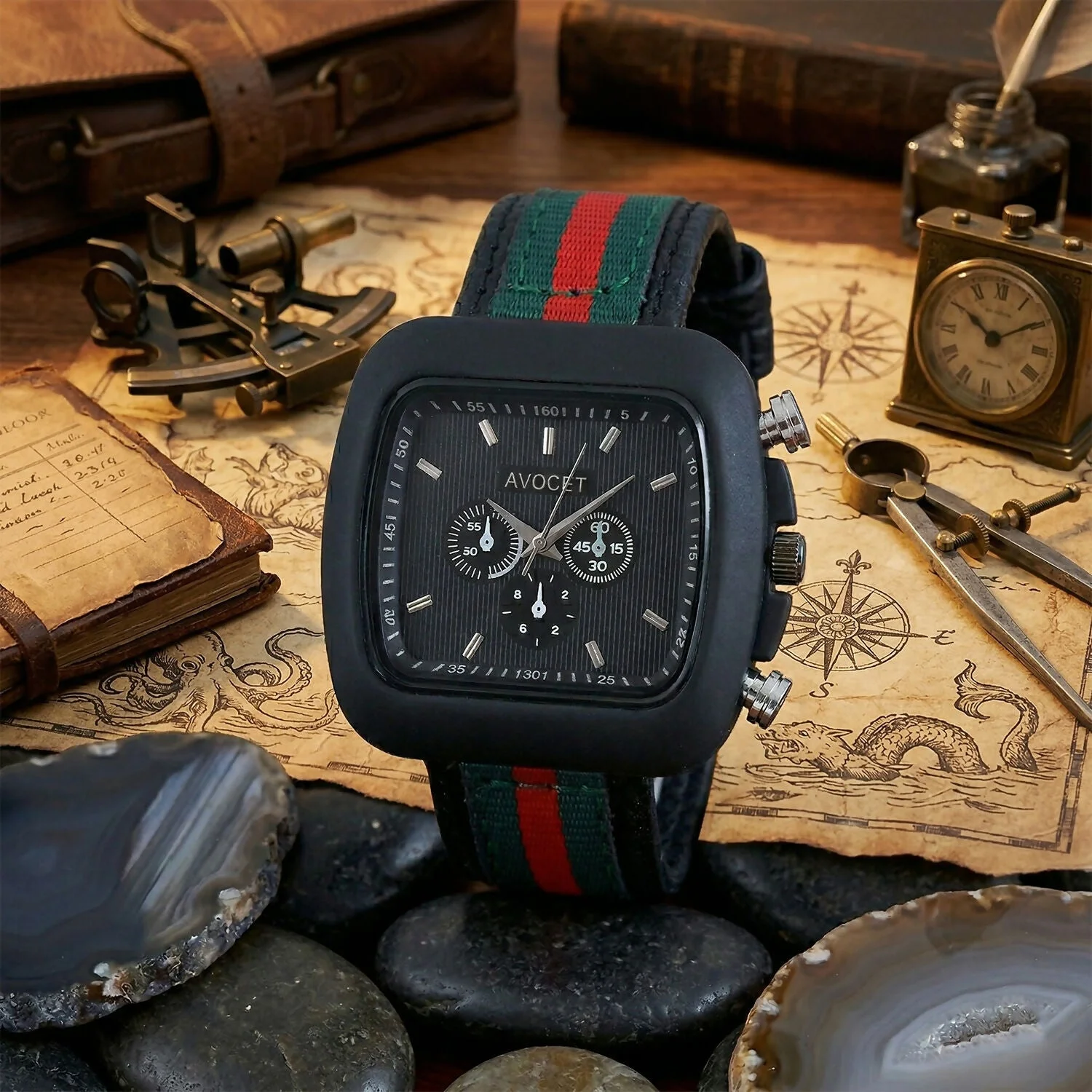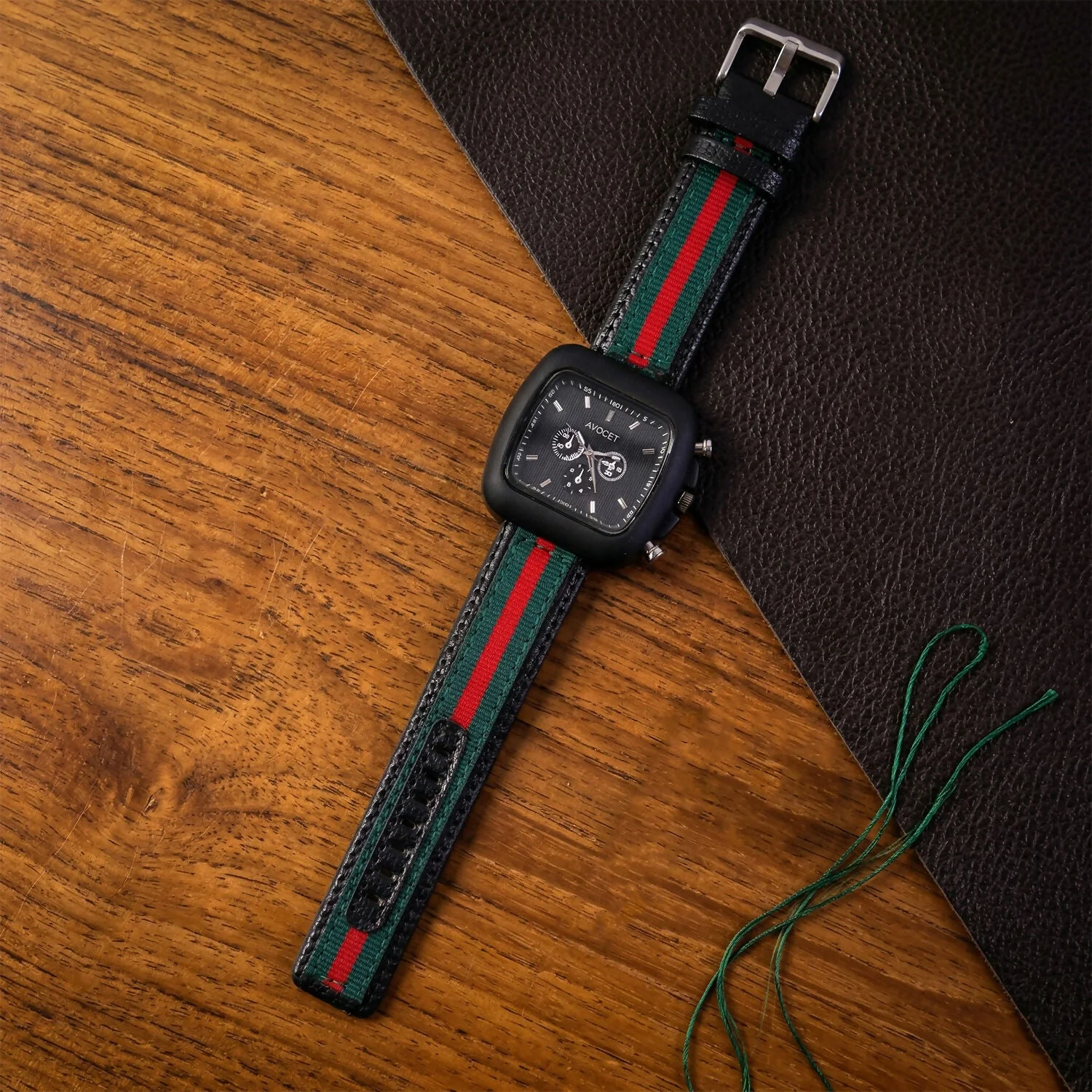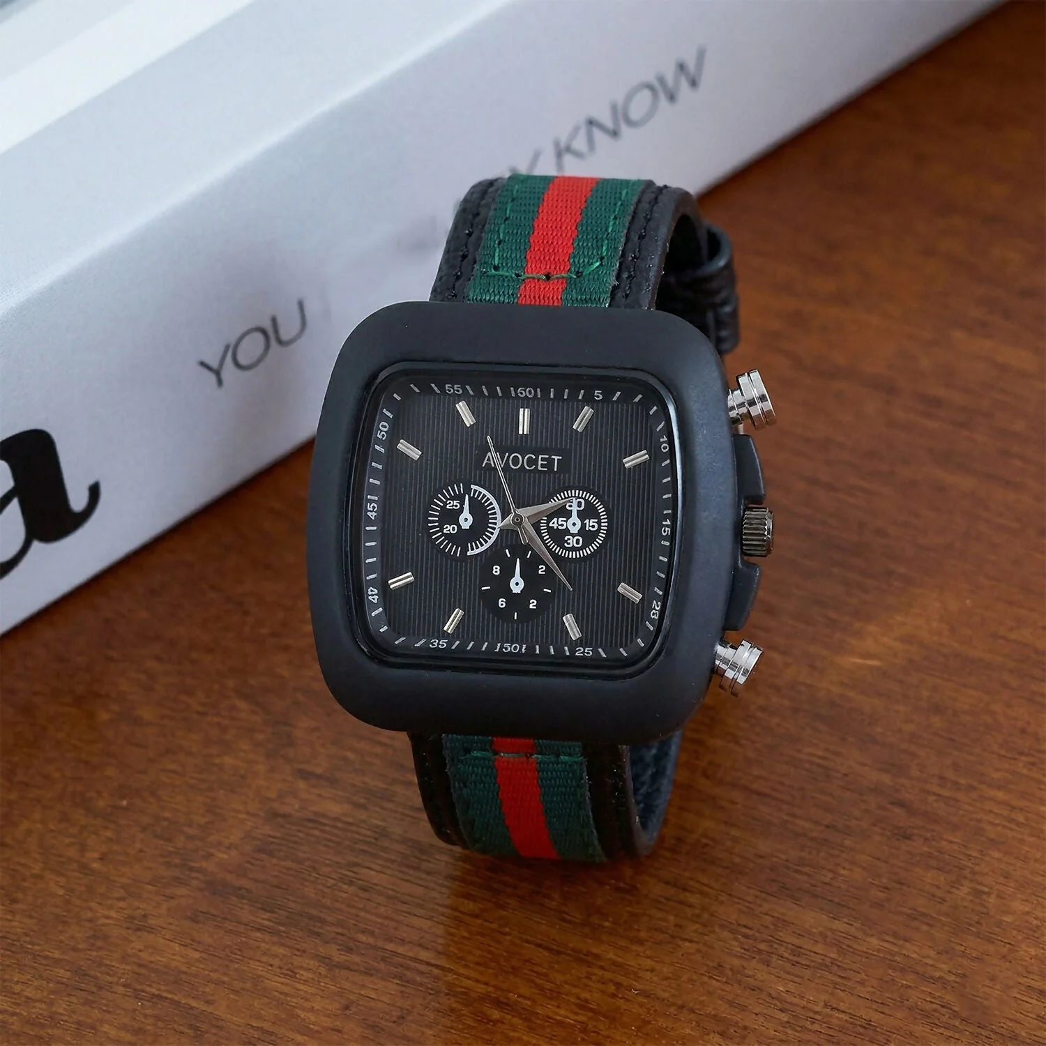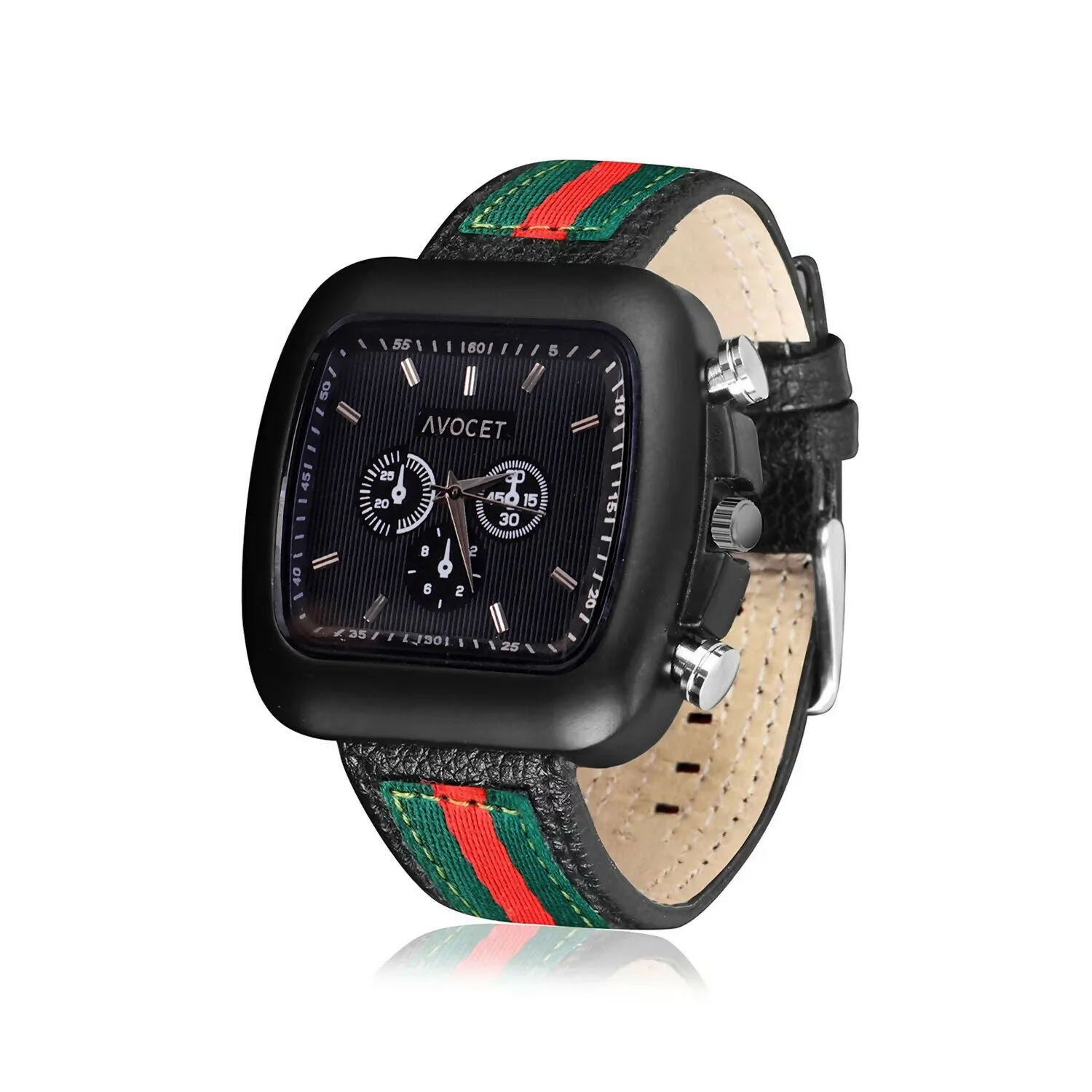 Be the first to review Stylish Black Square Dial Analog Watch with Striped Strap & Metal Case!