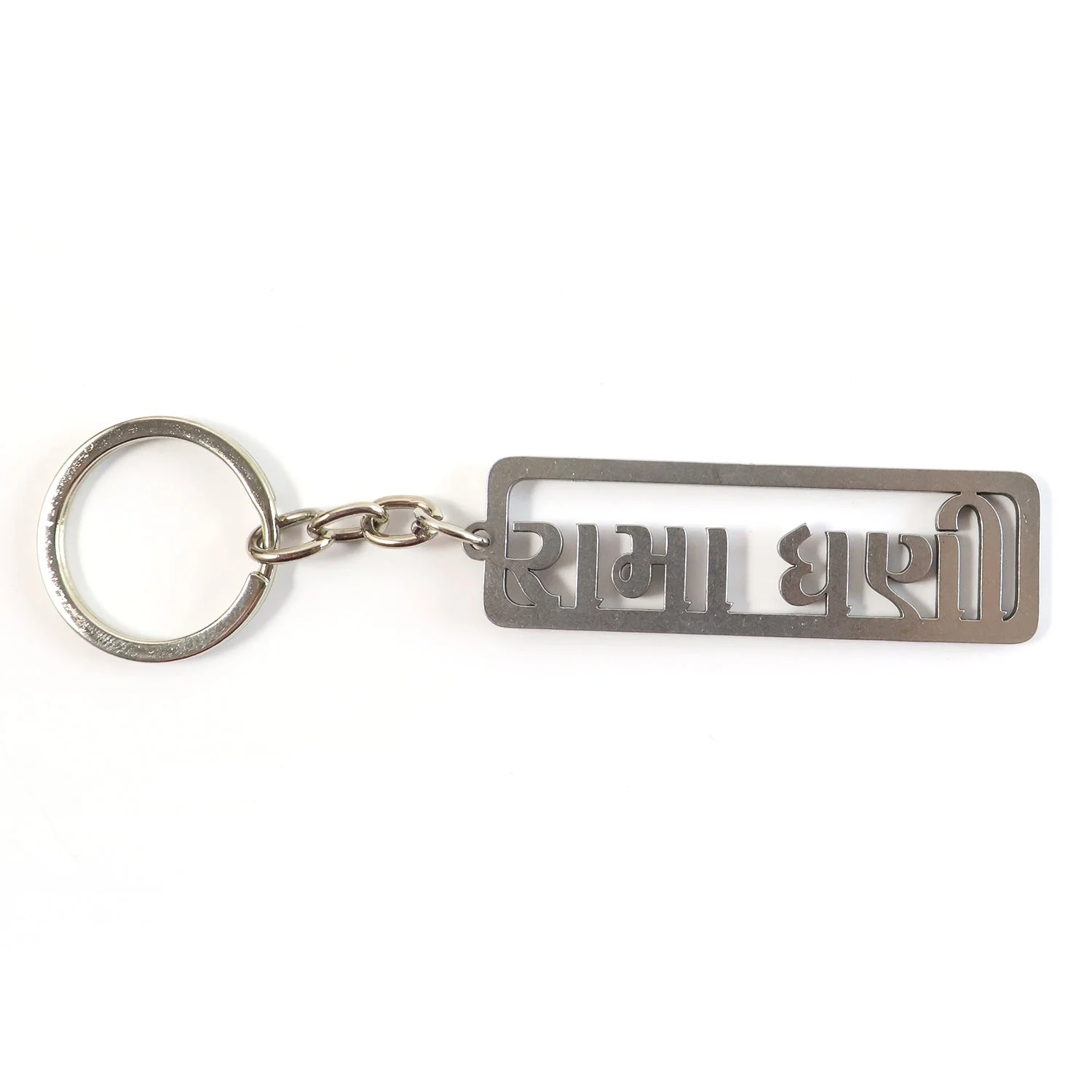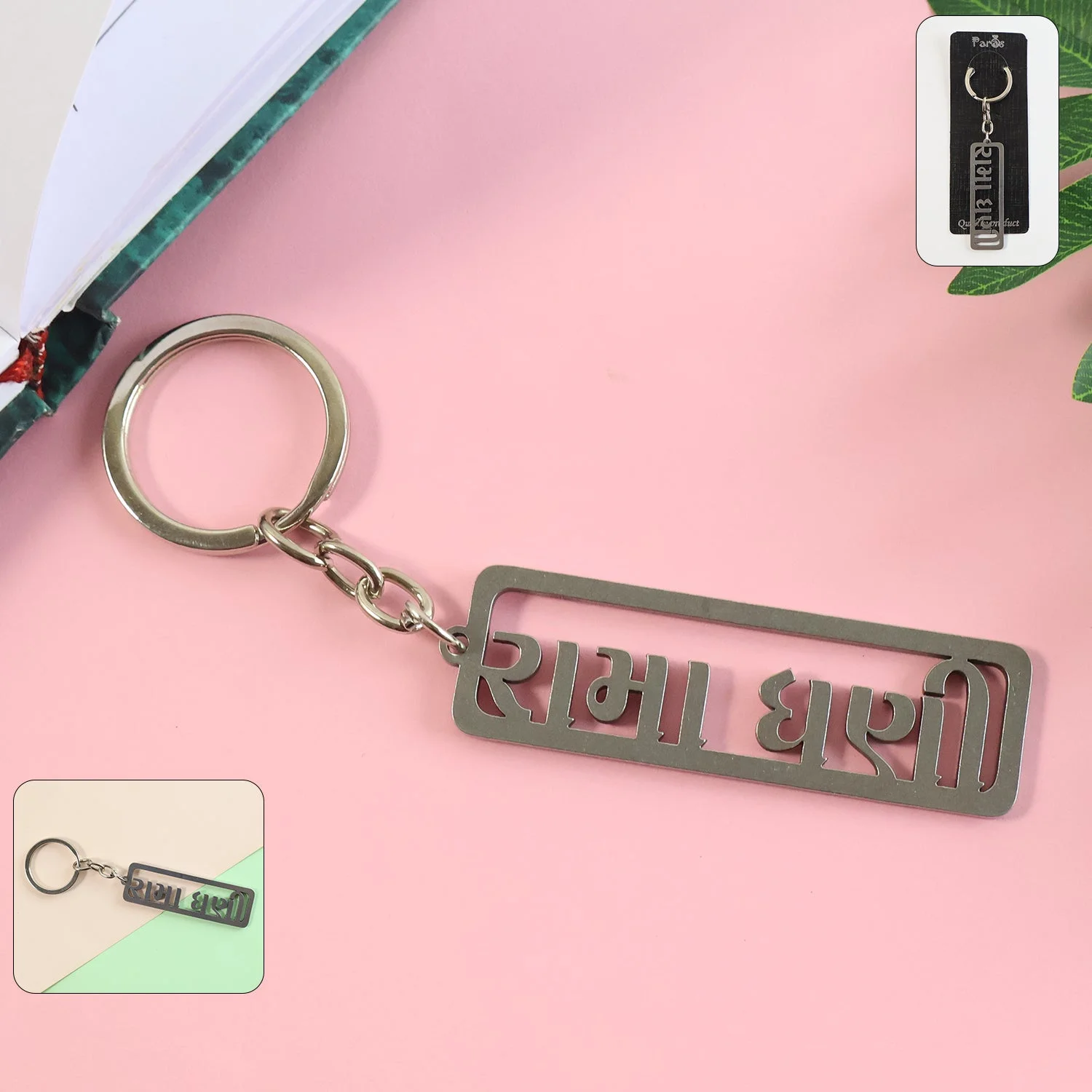 gujarati text keychain, metal gujarati keychain, gujarati devotional keychain,premium metal key ring, gujarati design keyring, bike keychain gujarati, car keychain gujarati,gujarati engraving keychain,devotional metal keychain, decorative gujarati plate keychain, stainless steel key ring, gujarati script keychain