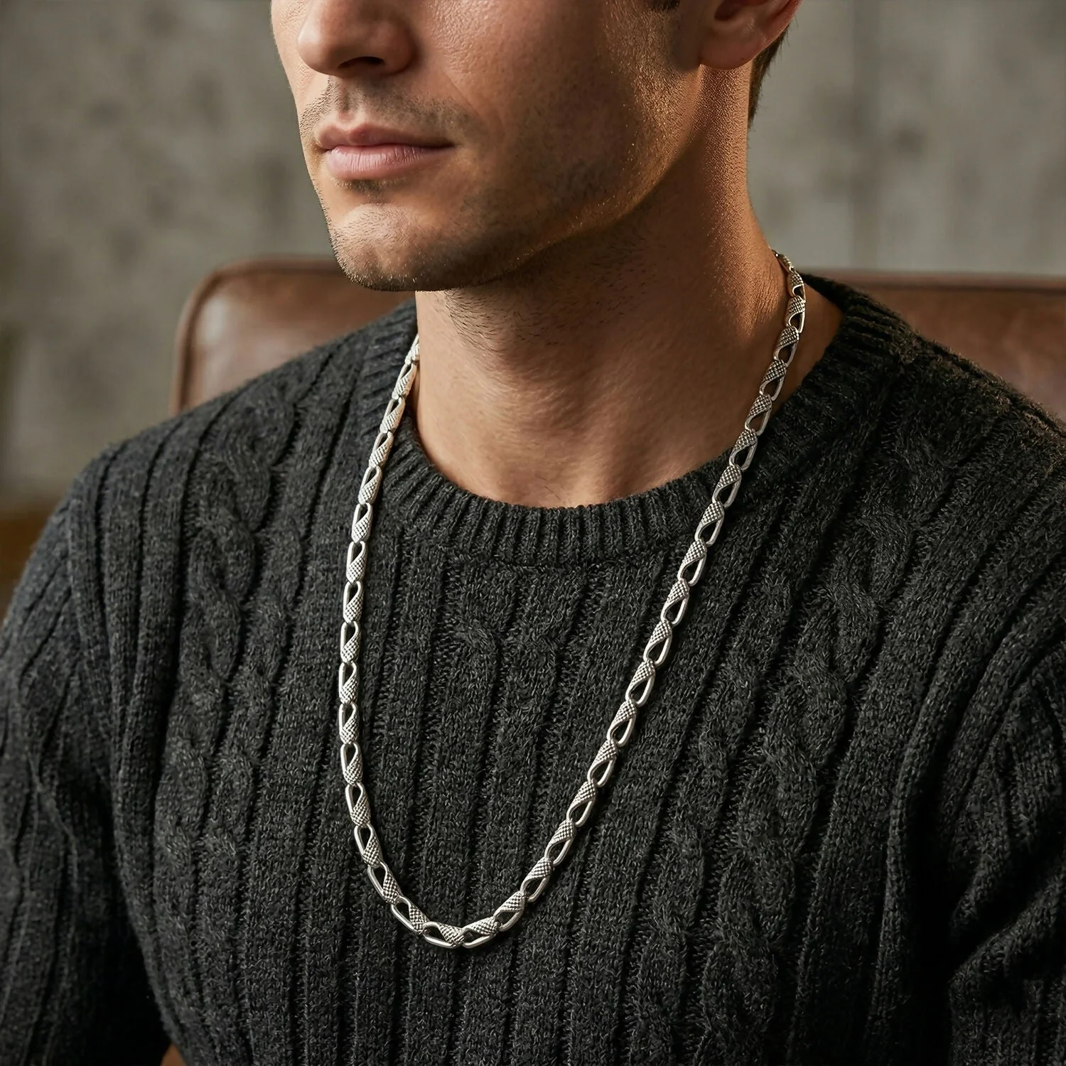 The unique textured links add a premium touch, making it perfect for casual wear as well as party styling. Designed to be lightweight yet durable, it ensures comfortable wear throughout the day. Whether paired with a simple t-shirt or a formal outfit, this chain enhances your overall appearance effortlessly.