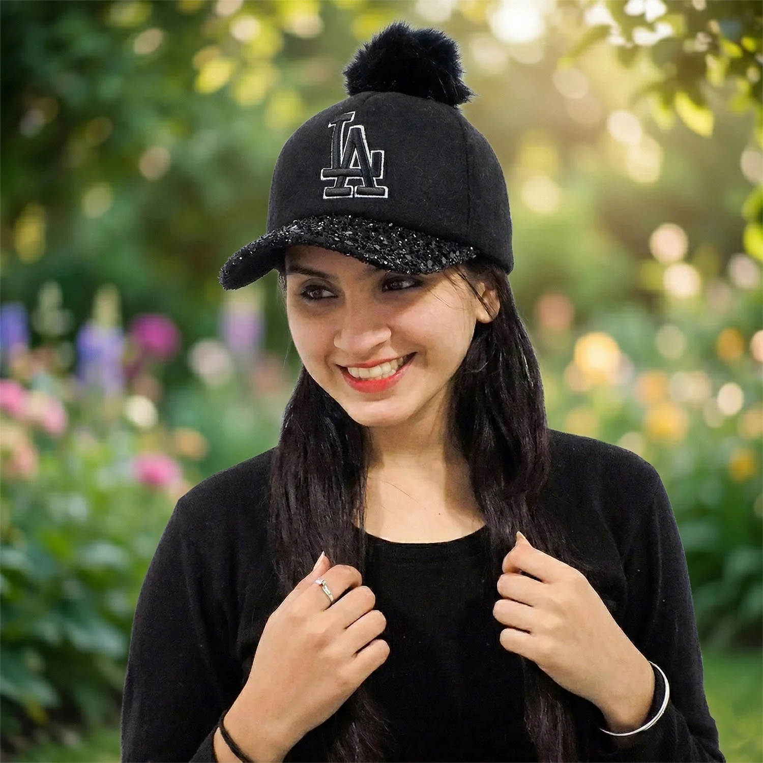 Upgrade your winter fashion with this stylish baseball cap featuring a soft fur pom pom and eye-catching glitter brim design. Crafted for both warmth and trend appeal, this cap combines a classic sporty look with a fashionable twist. The embroidered front detailing adds a premium touch, while the soft fabric ensures comfort during extended wear. Ideal for casual outings, travel, or everyday use, this cap not only enhances your style but also provides light protection from cold weather. A perfect accessory to complete modern winter outfits.