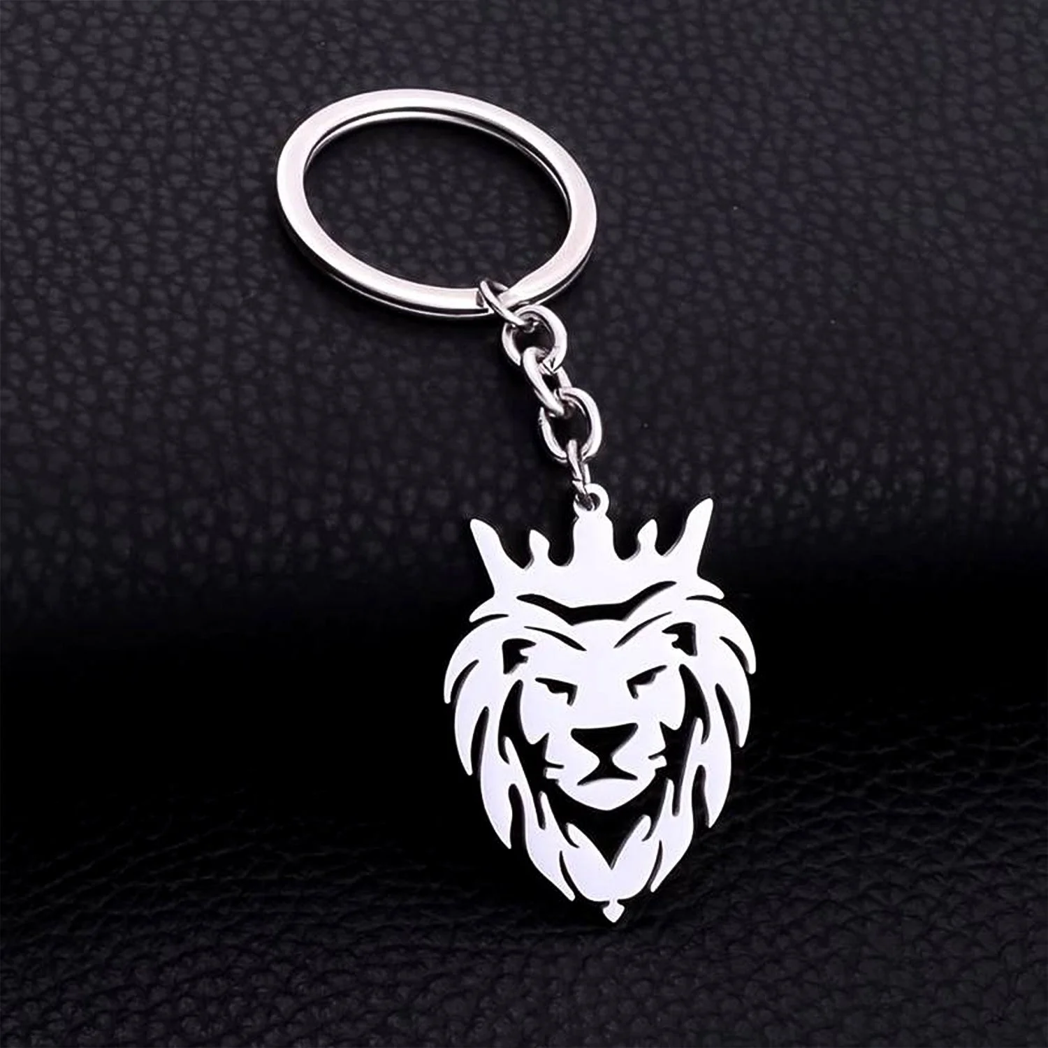 metal lion head keychain , stainless steel keyring , stylish keychain for men , trendy keychain for women , premium lion keyring , durable metal keychain , fashionable lion key holder , luxury keychain accessory , lion design keychain , unisex key holder , decorative keychain