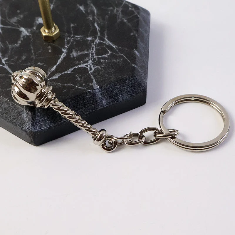 Gada keychain, Metallic Gada keychain, Divine inspired keychain, Metal Gada key ring, Stylish Gada keychain,Hindu god keychain, Spiritual metal key ring, Devotional keychain accessory,Premium metal key ring,Lord Hanuman keychain, Religious metal accessory, Trendy spiritual keychain,Hindu devotional keychain,