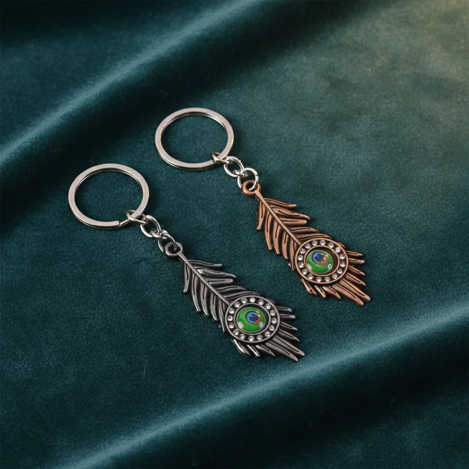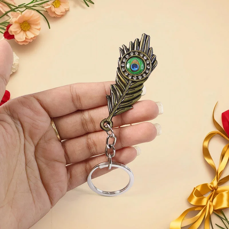 Peacock feather keychain, Mor Pankh keychain, Metal peacock key ring,Stylish feather keychain, Decorative key ring, Trendy peacock keychain, Fashion keychain accessory, Metallic feather key ring,Crystal accent key ringPeacock charm keychain, Fancy metal keychain
