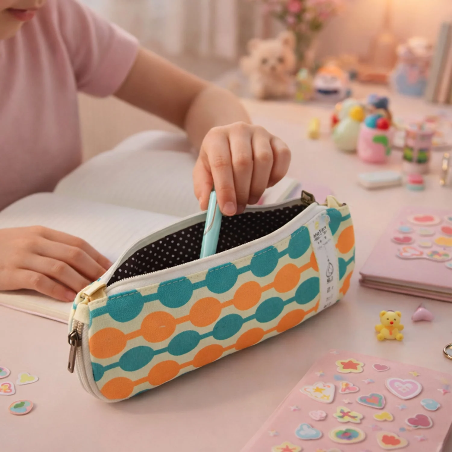 stylish multi-color pencil pouch, geometric printed pencil pouch, durable zipper stationery organizer, school stationery case, college stationery pouch, office supply organizer, travel pencil pouch, fabric pen holder case, multipurpose stationery pouch, student pencil pouch, portable zipper organizer, everyday use pencil pouch, lightweight stationery bag, compact pen storage case, printed pencil case, versatile stationery organizer, durable fabric pencil pouch, colorful pen holder pouch