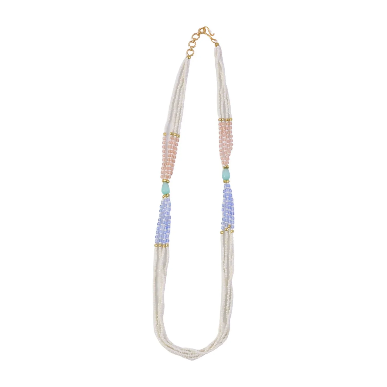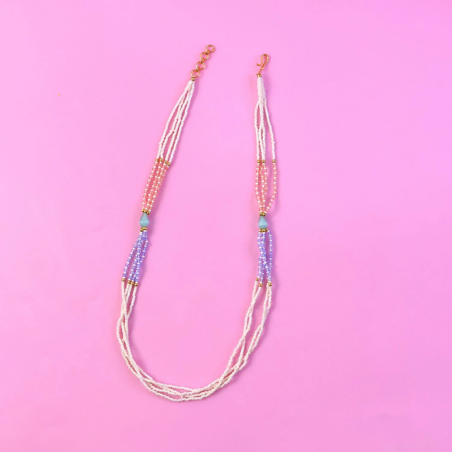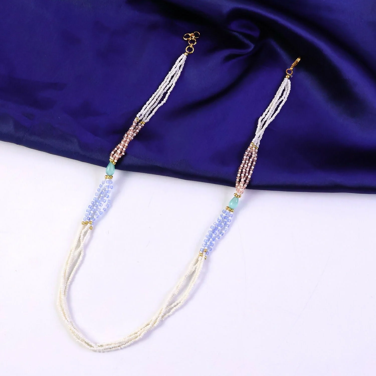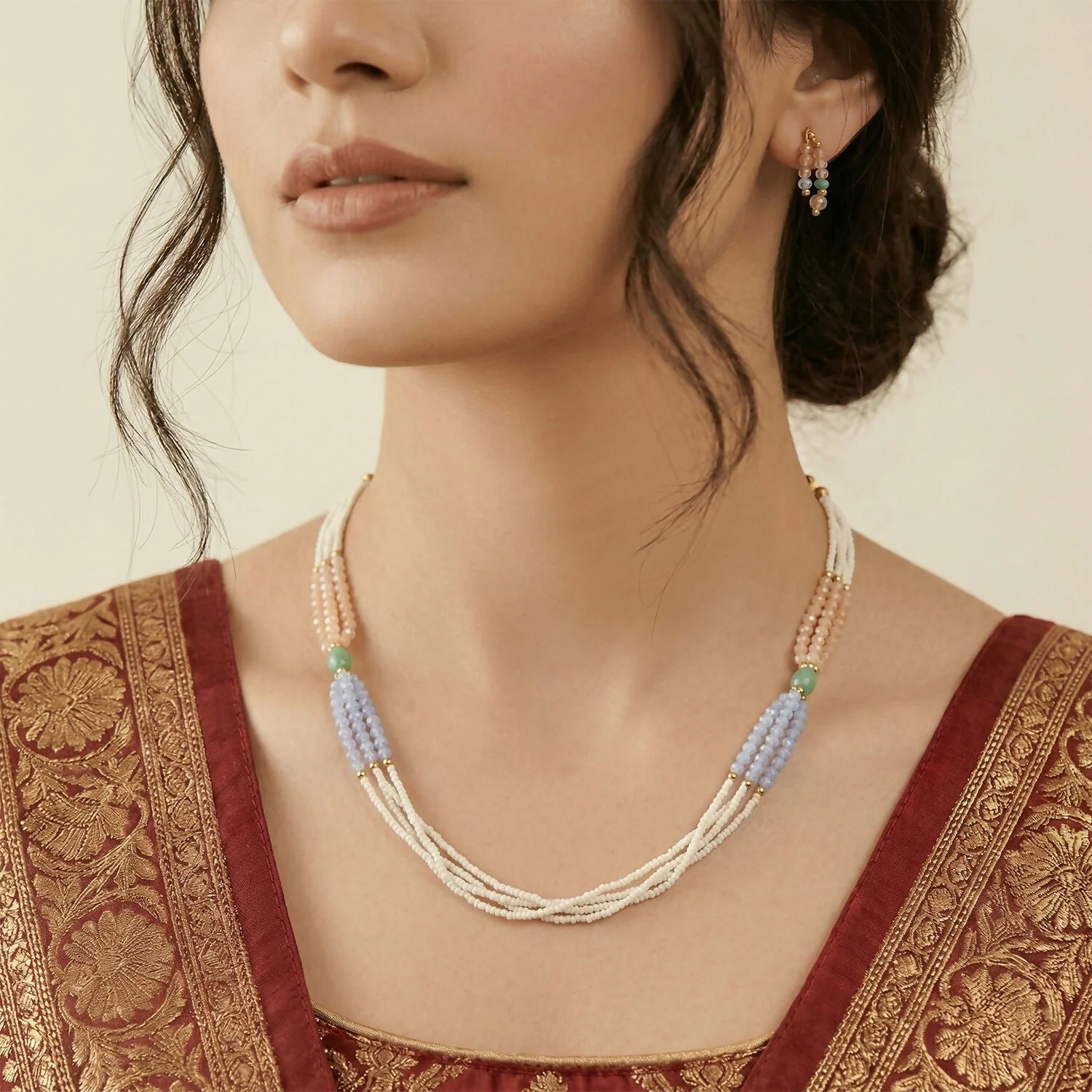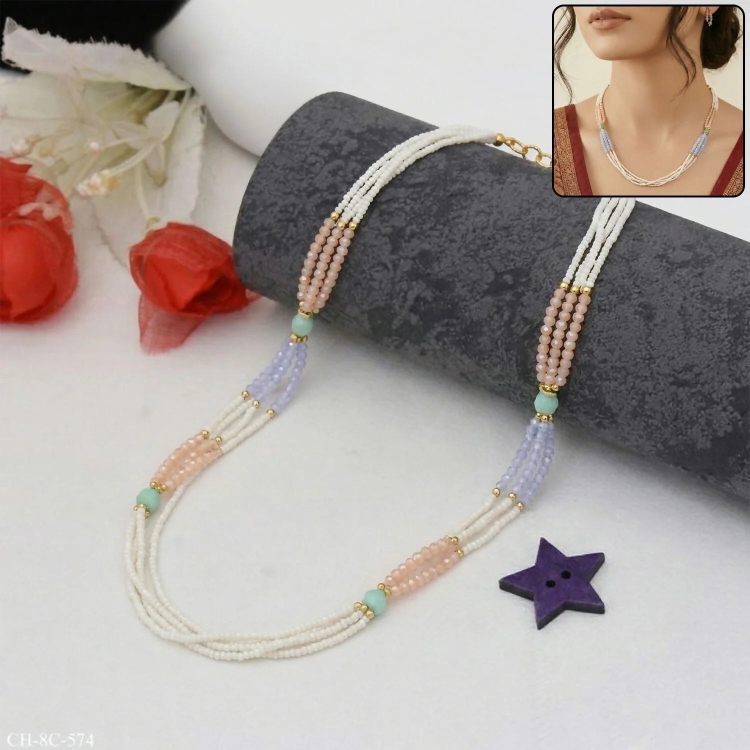 Be the first to review Stylish Multi-Layer Pearl Beaded Necklace with Pastel Peach, Lavender & Mint Accents!