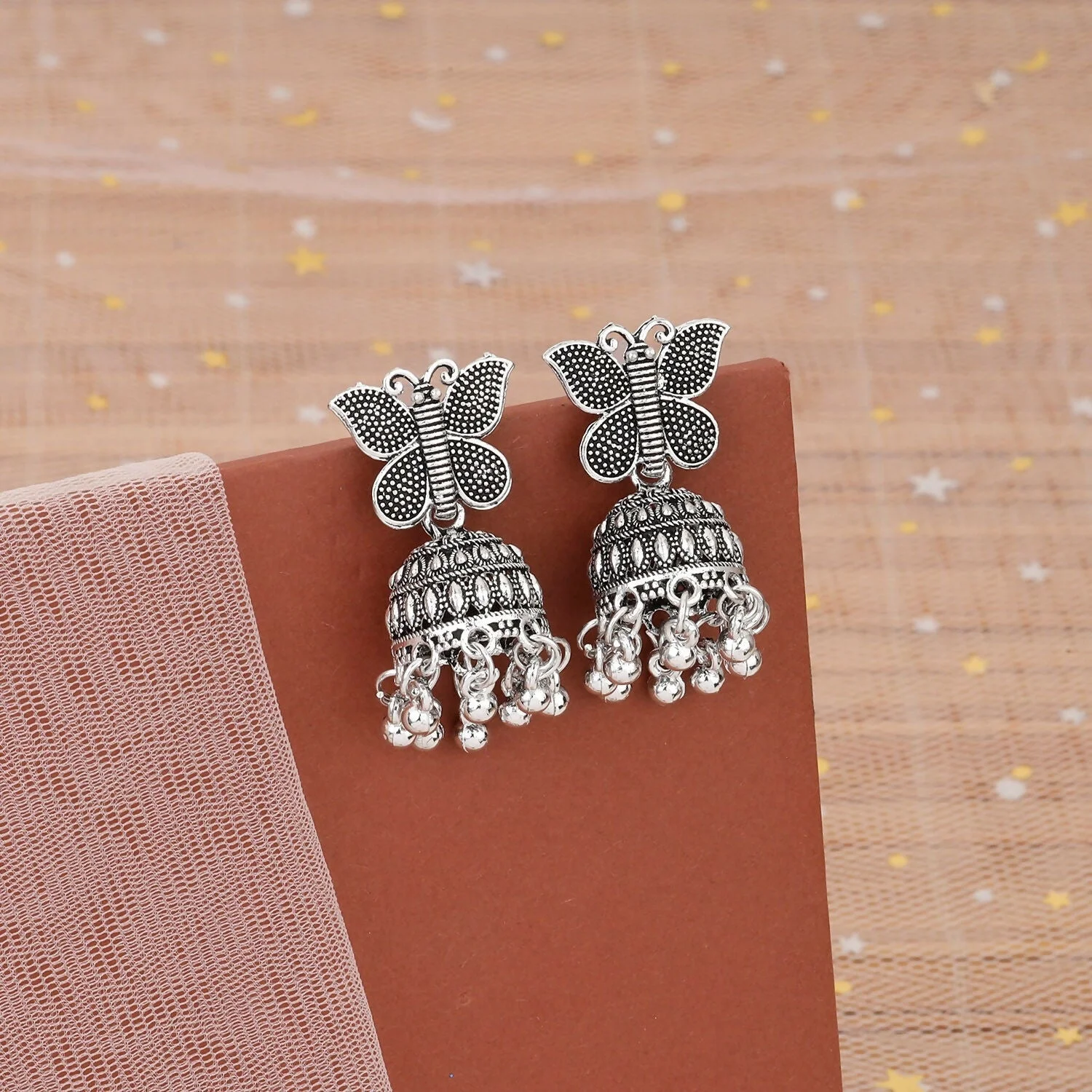 Be the first to review Stylish Oxidised Silver Butterfly Jhumka Earrings!