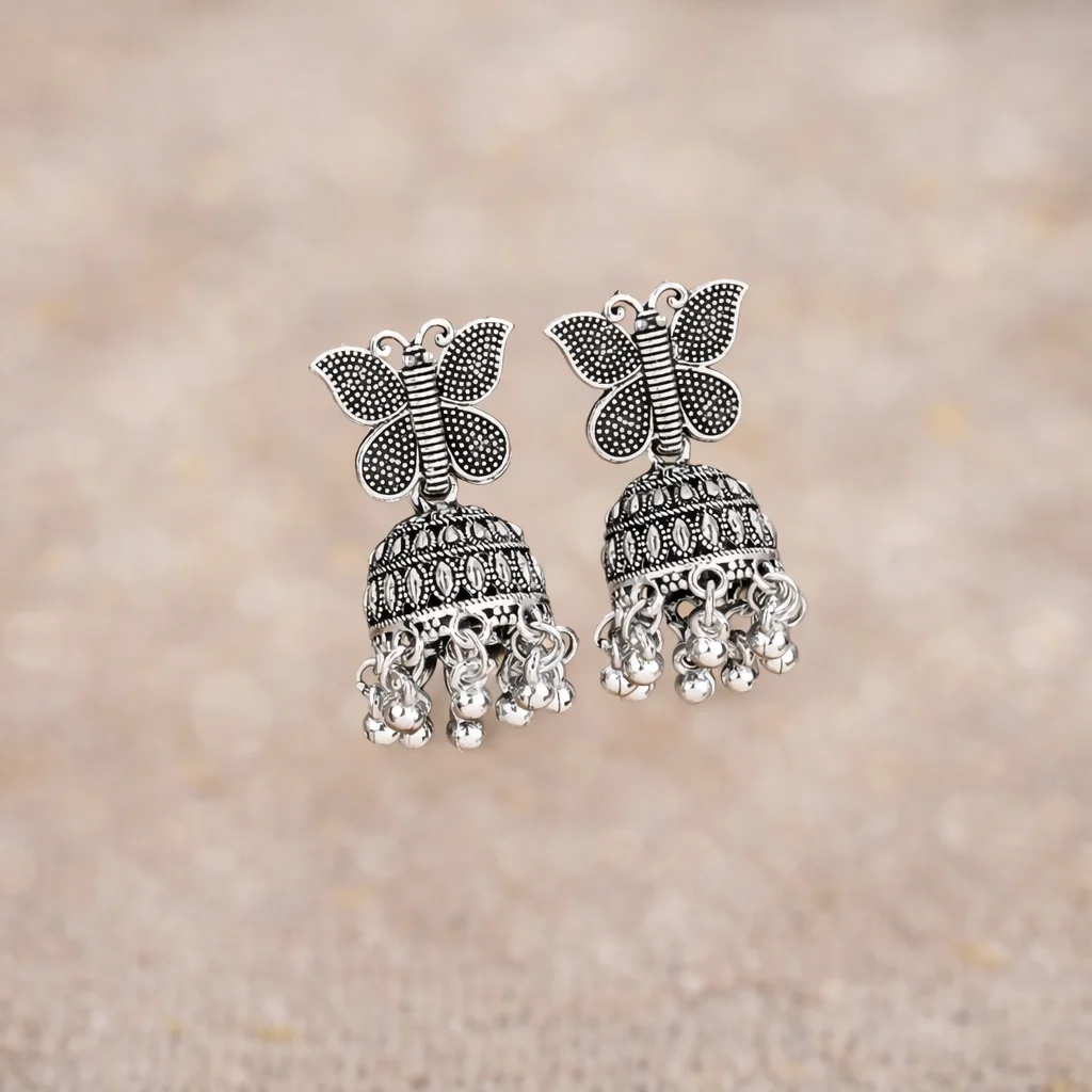 Oxidised Silver Butterfly Jhumka Earrings
