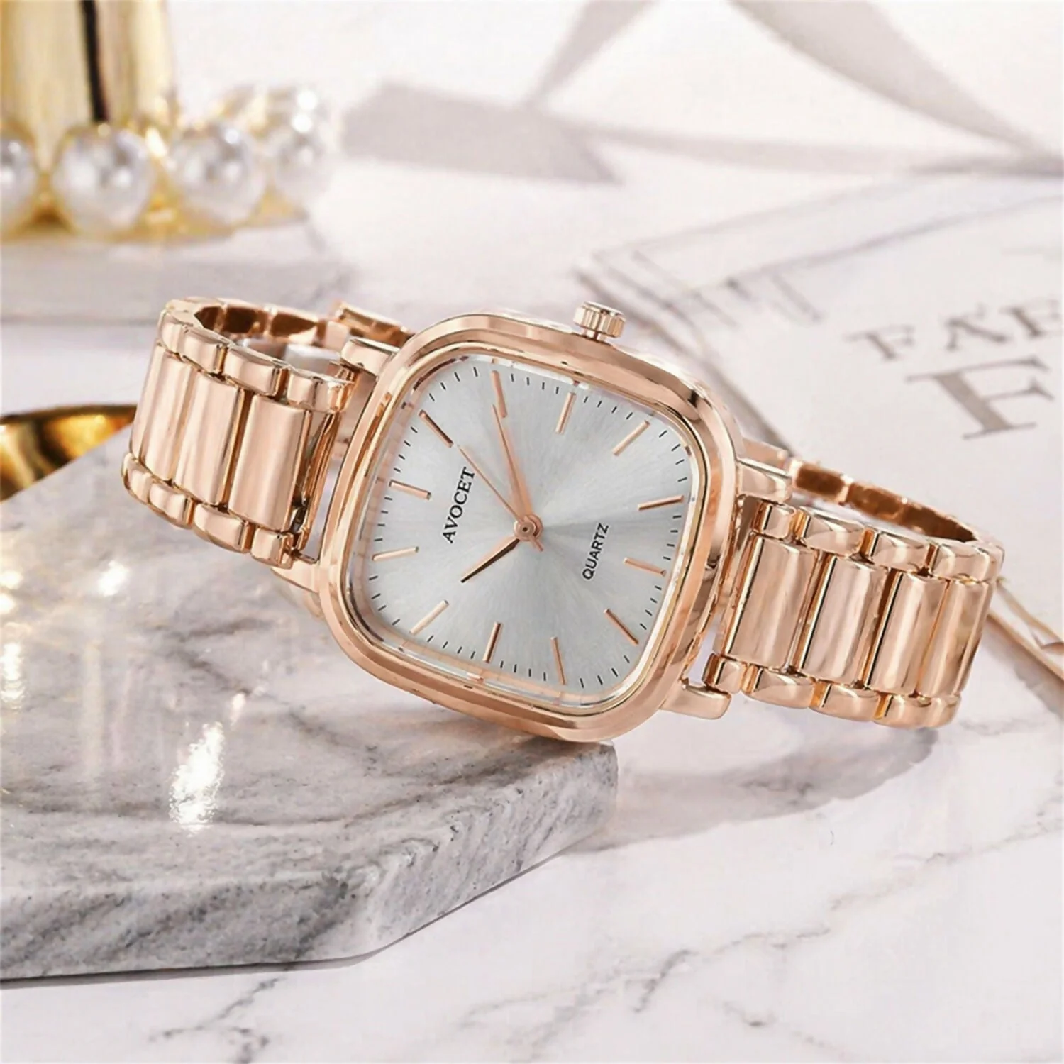 Be the first to review Stylish Rose Gold Square Dial Analog Women’s Watch with Metal Strap!