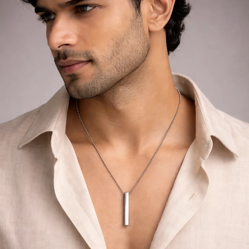 Be the first to review Stylish Silver-Plated Sleek Bar Pendant Chain for Men Minimal Necklace!