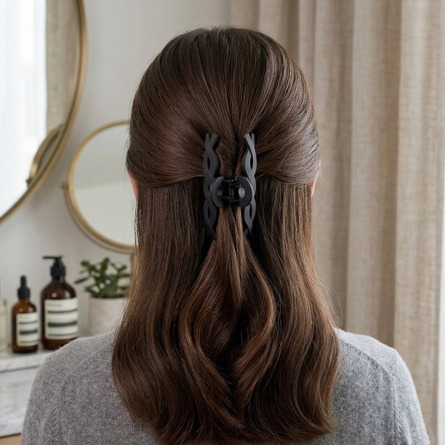 Add a modern and elegant touch to your hairstyle with this stylish twist design hair claw clip. Designed for both functionality and fashion, it provides a strong grip to hold your hair securely throughout the day. The unique interwoven pattern enhances its aesthetic appeal while ensuring even distribution of hold without pulling or discomfort. Perfect for quick styling, this clip helps you create neat buns, half-up styles, or casual looks effortlessly. Lightweight and durable, it is an essential accessory for everyday use.