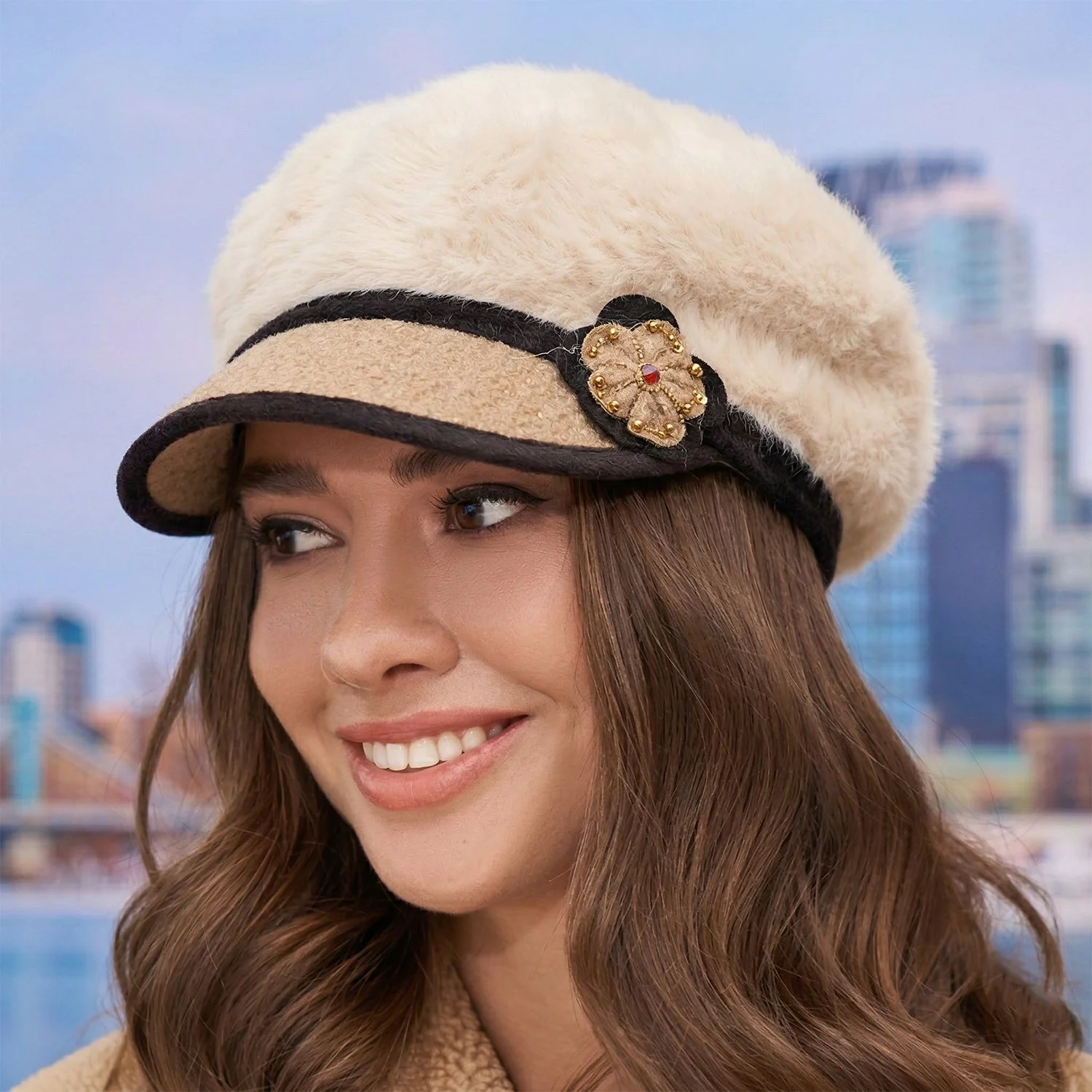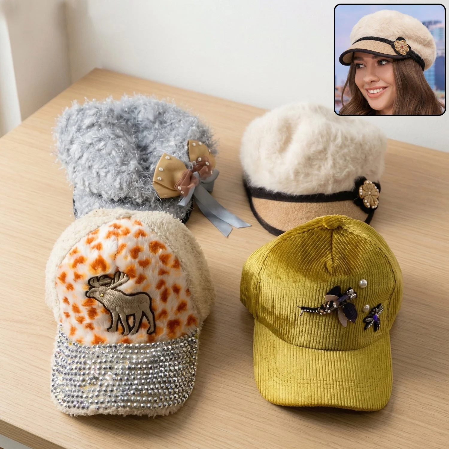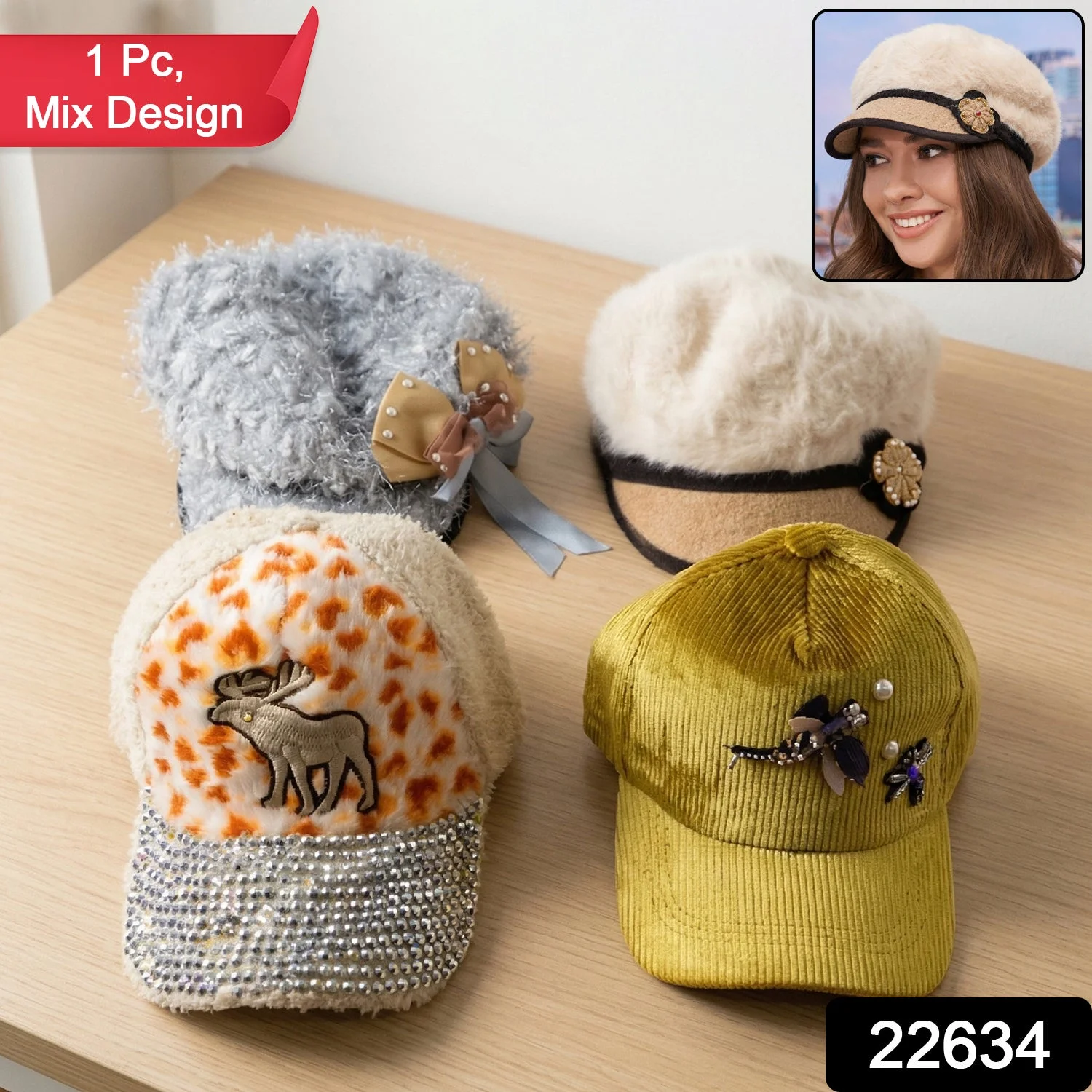 Stylish Winter And Summer Designer Cap 1 Pc Mix Design – Soft Fur Warm Fashion Cap with Embroidery and Decorative Detailing Comfortable Casual Wear Outdoor Headwear for Women & Girls