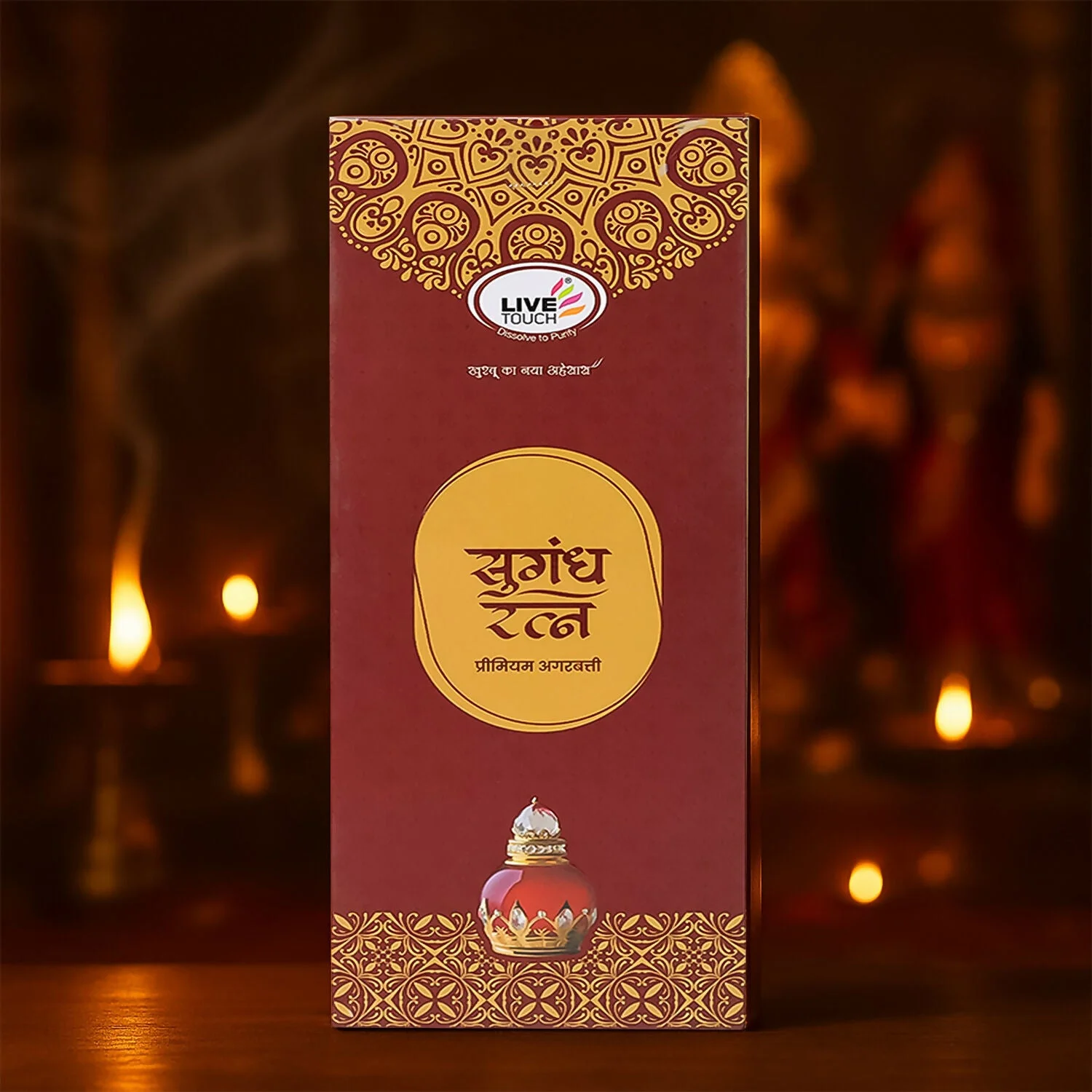 Live Touch Sugandh Ratna Premium Agarbatti – Long-Lasting Fragrance Incense Sticks for Puja, Meditation & Home Aromatherapy (250g Box Pack)