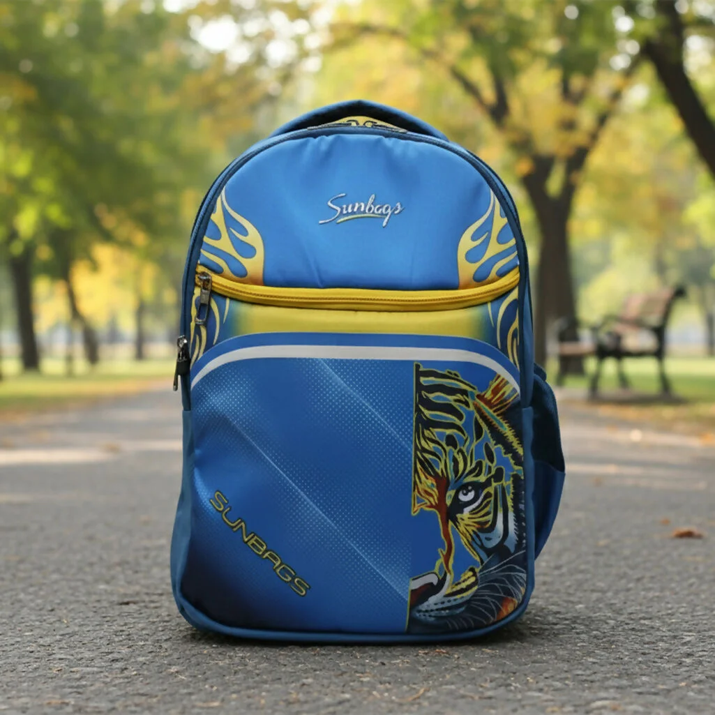 sunbags college backpack, multicolor tiger print backpack, tiger print school bag, lightweight backpack, durable school bag, college backpack, kids tiger backpack,spacious compartments backpack, adjustable straps backpack, front pocket bag,printed backpack, student book bag, stylish backpack