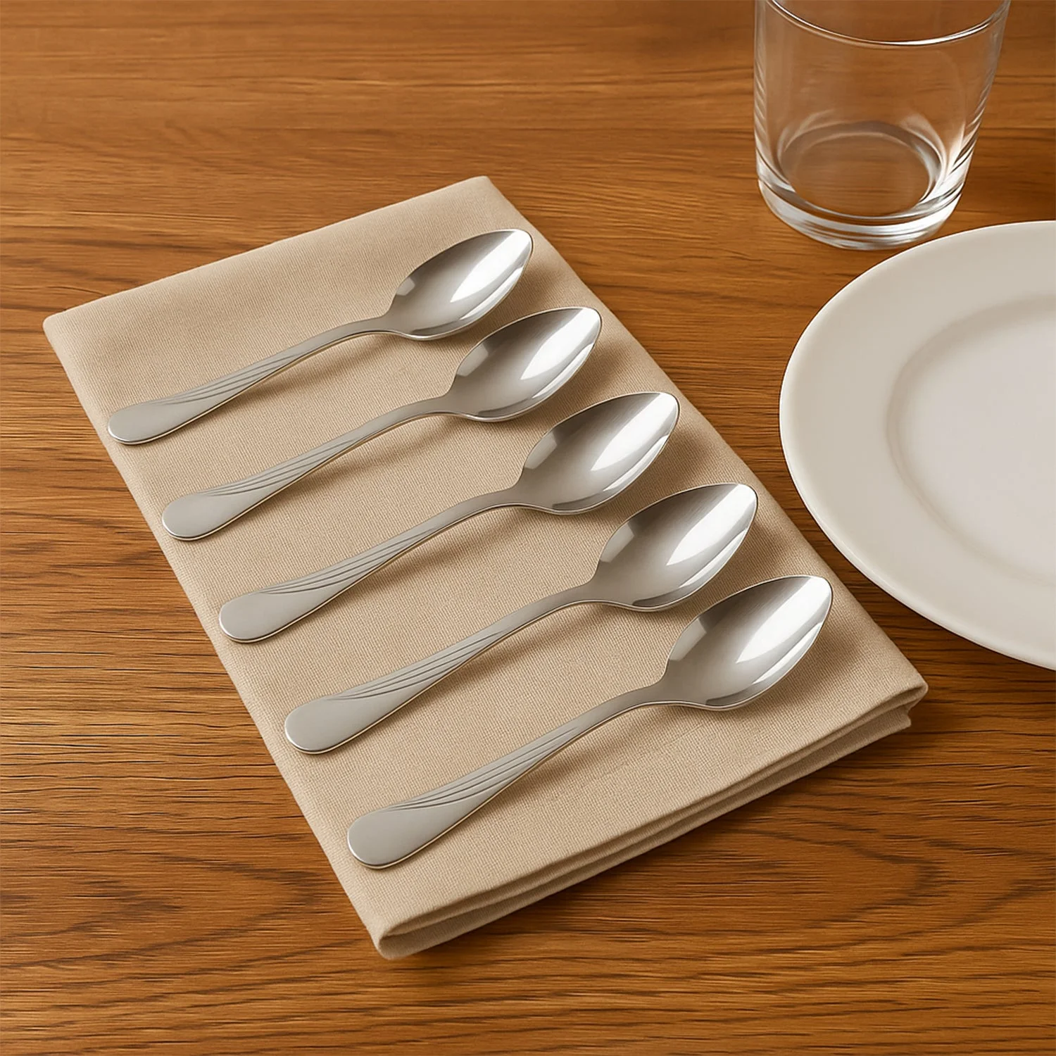 Spoon, Cutlery , Tableware , Serving Spoon , Dining Spoon , Eating Spoon , Kitchen Essentials , Hotel & Restaurant Use , Stainless Steel Spoon , Silver Spoon , Metal Spoon, Teaspoon , Dinner Spoon , Dessert Spoon , Classic Spoon Set , Polished Spoon