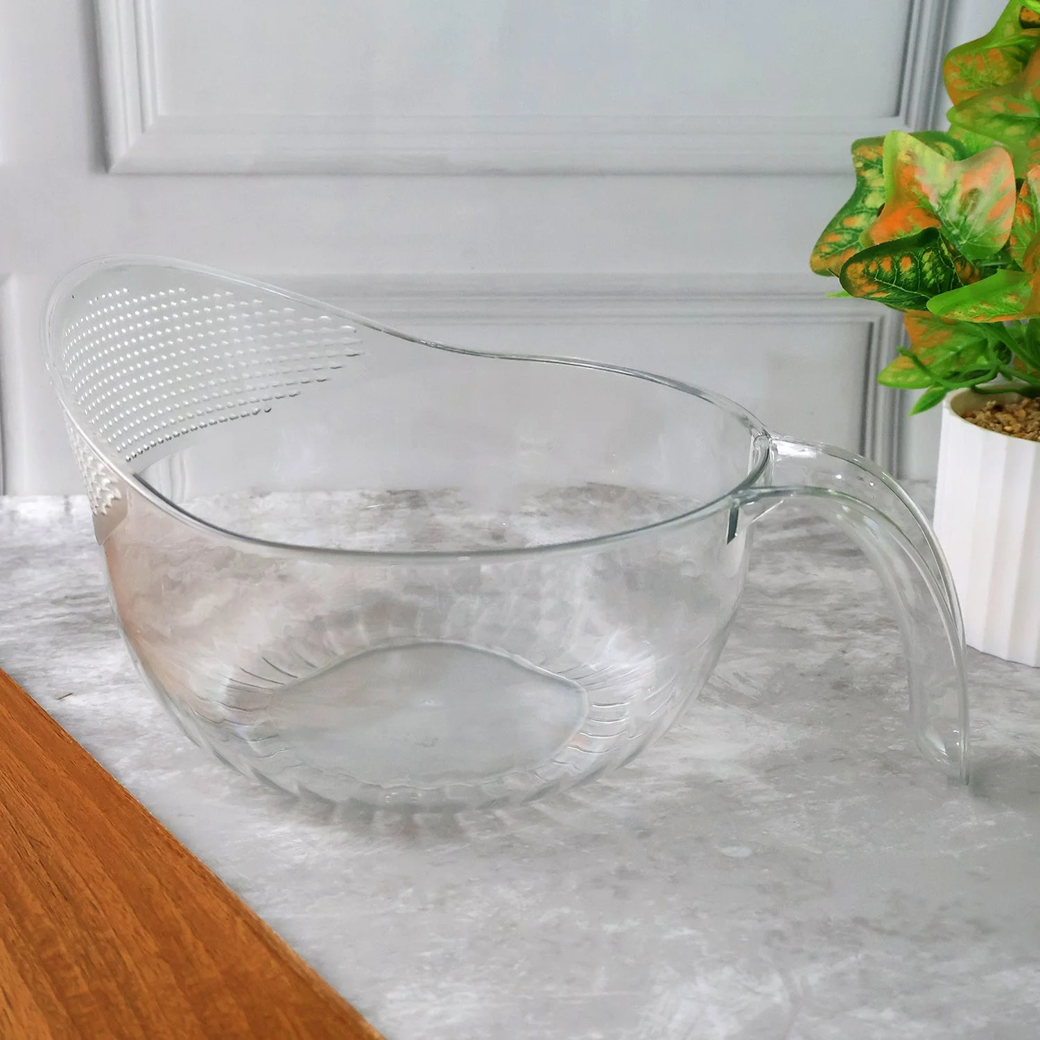 Add versatility and convenience to your kitchen with this Multipurpose Transparent Plastic Bowl with Handle. Designed with a sturdy built-in handle and textured grip, this bowl is ideal for preparing, serving, and storing a wide variety of foods. Its transparent body allows easy visibility of contents, making it both practical and stylish for daily use.