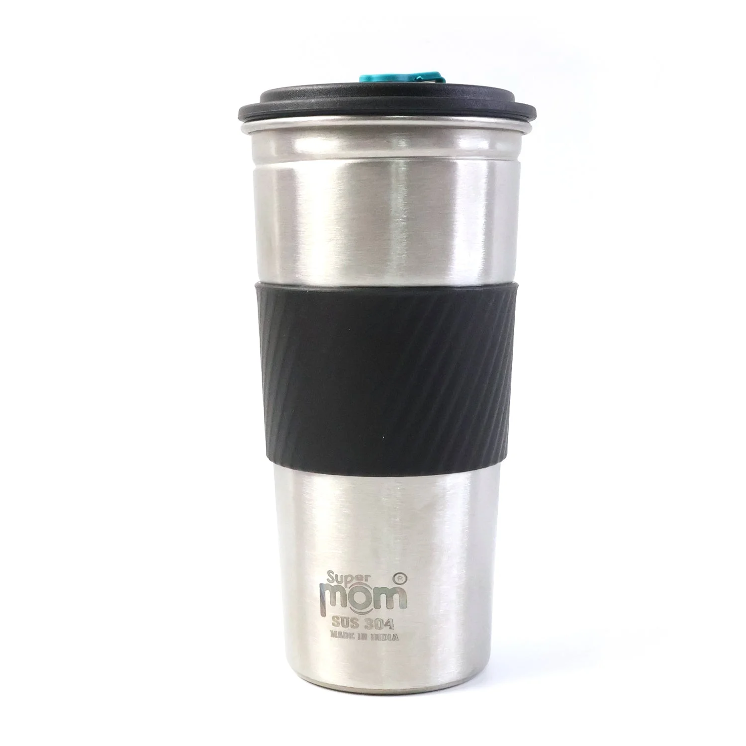 supermom sip mate tumbler, stainless steel travel tumbler, stainless steel tumbler, insulated travel tumbler, leak resistant tumbler, leak proof lid tumbler, hot and cold beverage tumbler, thermal tumbler, vacuum insulated tumbler, double wall insulated tumbler, heat insulated grip tumbler, coffee travel mug