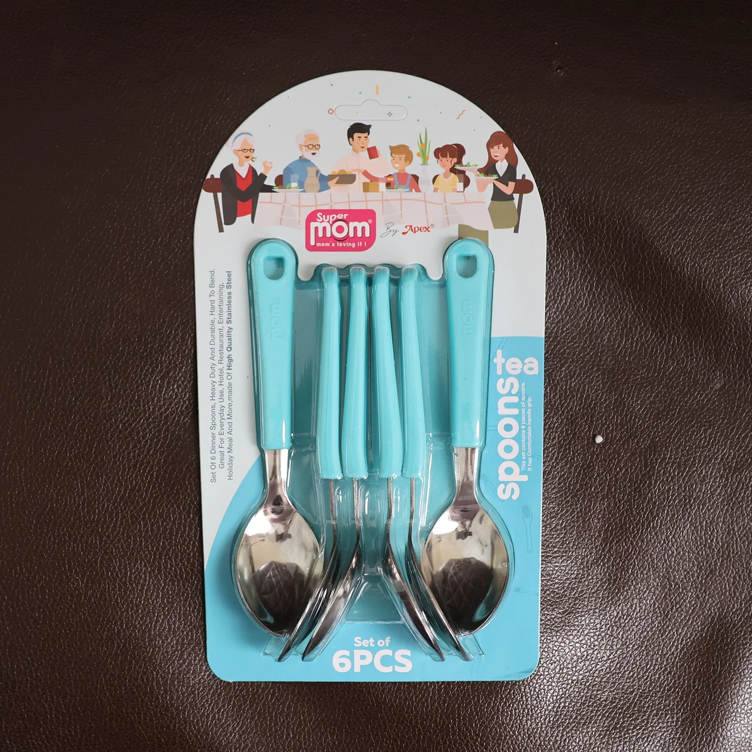 Supermom Stainless Steel Tea Spoon Set – 6 Piece Durable Spoons with Comfortable Plastic Handle for Tea, Coffee, Desserts, and Daily Dining Use