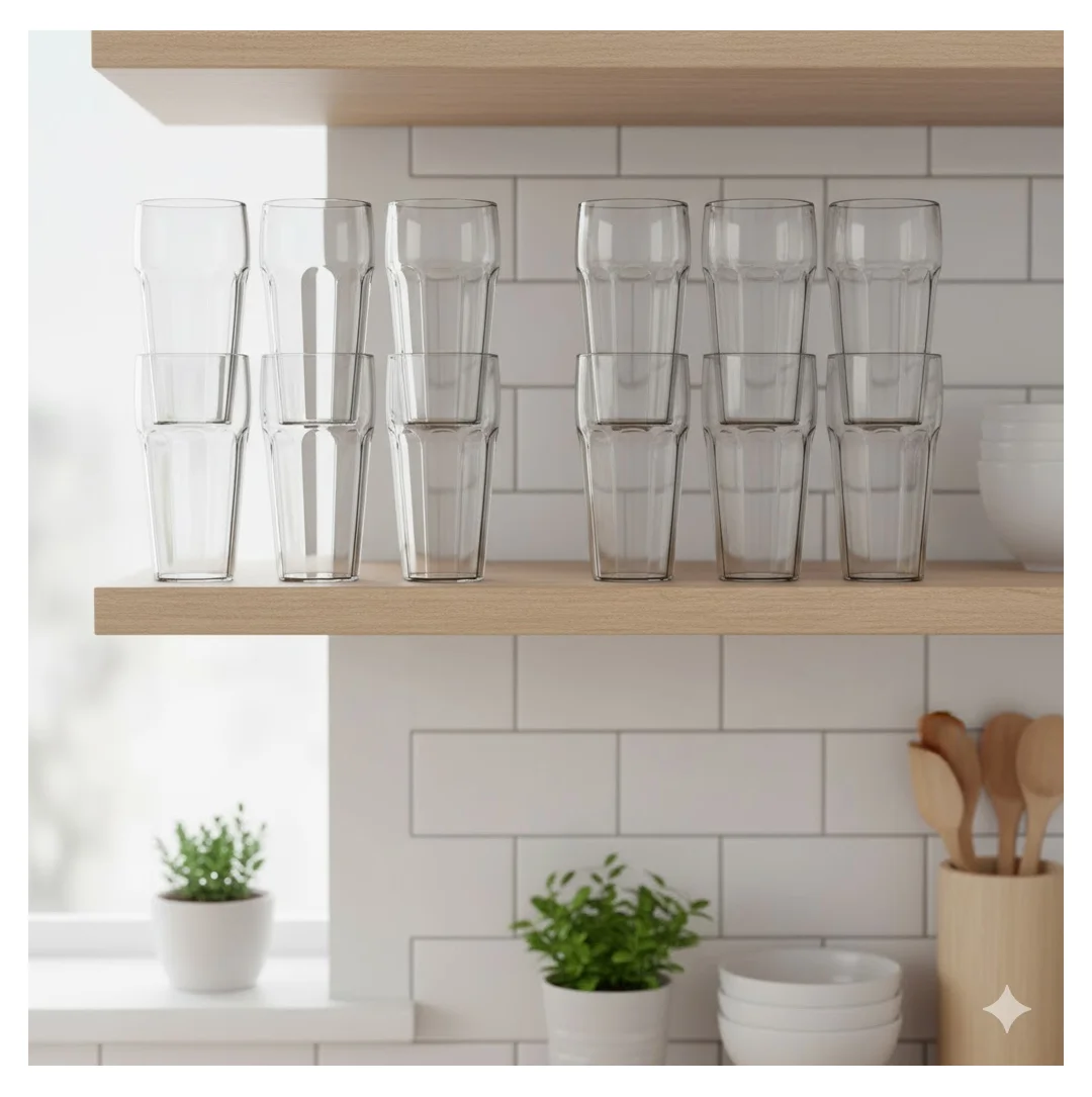 Enjoy your favorite beverages in style with this Premium 6-Piece Transparent Smoothy Glass Set. Each tumbler is crafted from high-quality, food-grade unbreakable plastic that offers the look and clarity of real glass while being lightweight and durable. With a 300 ML capacity, these glasses are perfect for serving smoothy, milkshakes, juices, soft drinks, and water. The crystal-clear finish adds elegance to your table setting, making them suitable for both daily use and special occasions. These glasses are easy to clean, dishwasher safe, and ideal for families who want practicality with sophistication.
