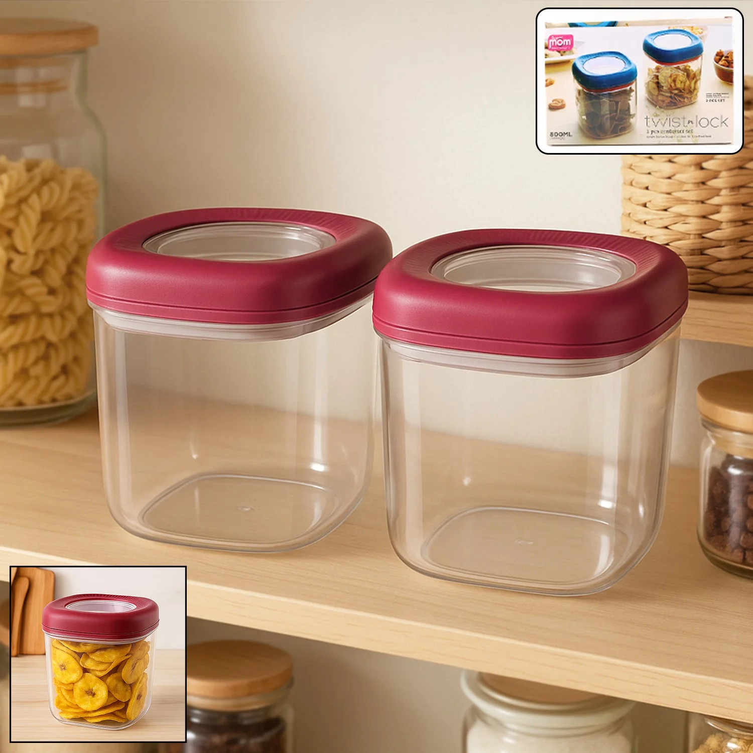 2 Pc Approx 800 ML Transparent Twist Lock Kitchen Storage Container Set – Airtight Food Grade Jars with Easy Grip Lids for Pantry & Fridge Organization