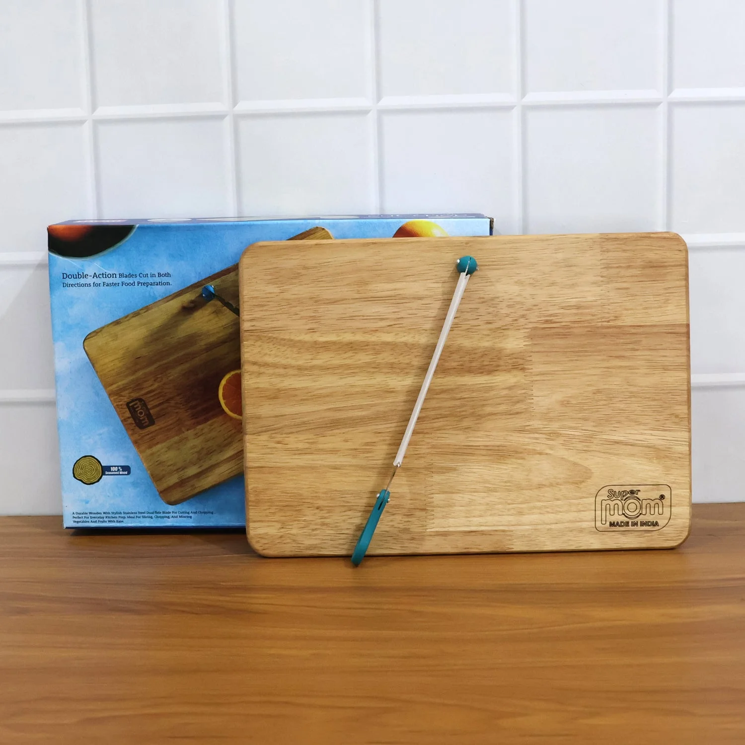 Supermom Wooden Craft Cutting and Chopping Board with Stainless Steel Knife – 2-in-1 Vegetable and Fruit Cutter with Ergonomic Handle – Ideal for Kitchen Use – 1 Set