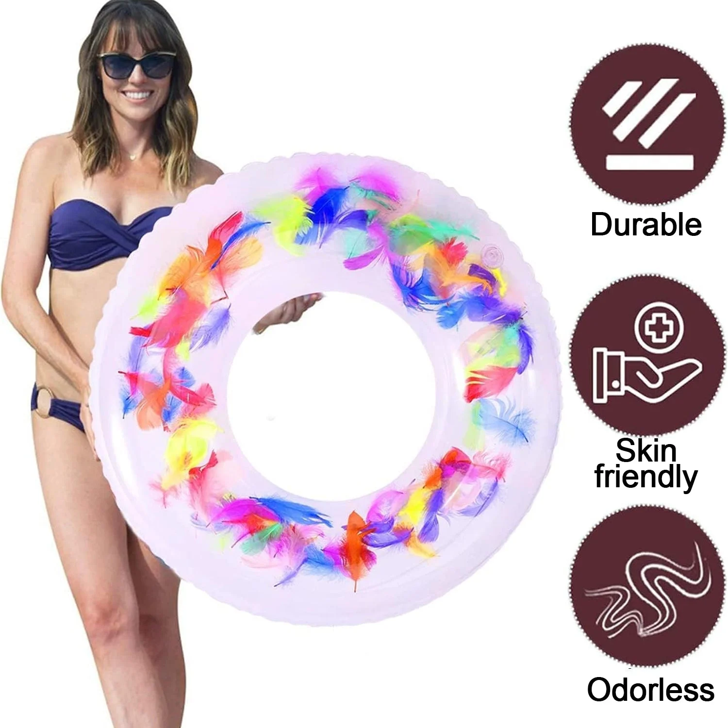 Swim Ring, For Adults, Conveniently Portable, Feathers, Swimming Ring, For Water Play, For Beaches, Swimming, Summer Vacation, Women's, Men's (1 Pc)