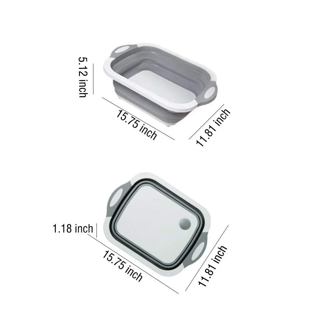 Can be used as dish tub for household needs and camping clean-up such as washing dishes and carrying iced beverages, durable chopping board for cutting, chopping and slicing after folding ideal for dishes/fruit/vegetable/meat/seafood/ or dish rack for utensil