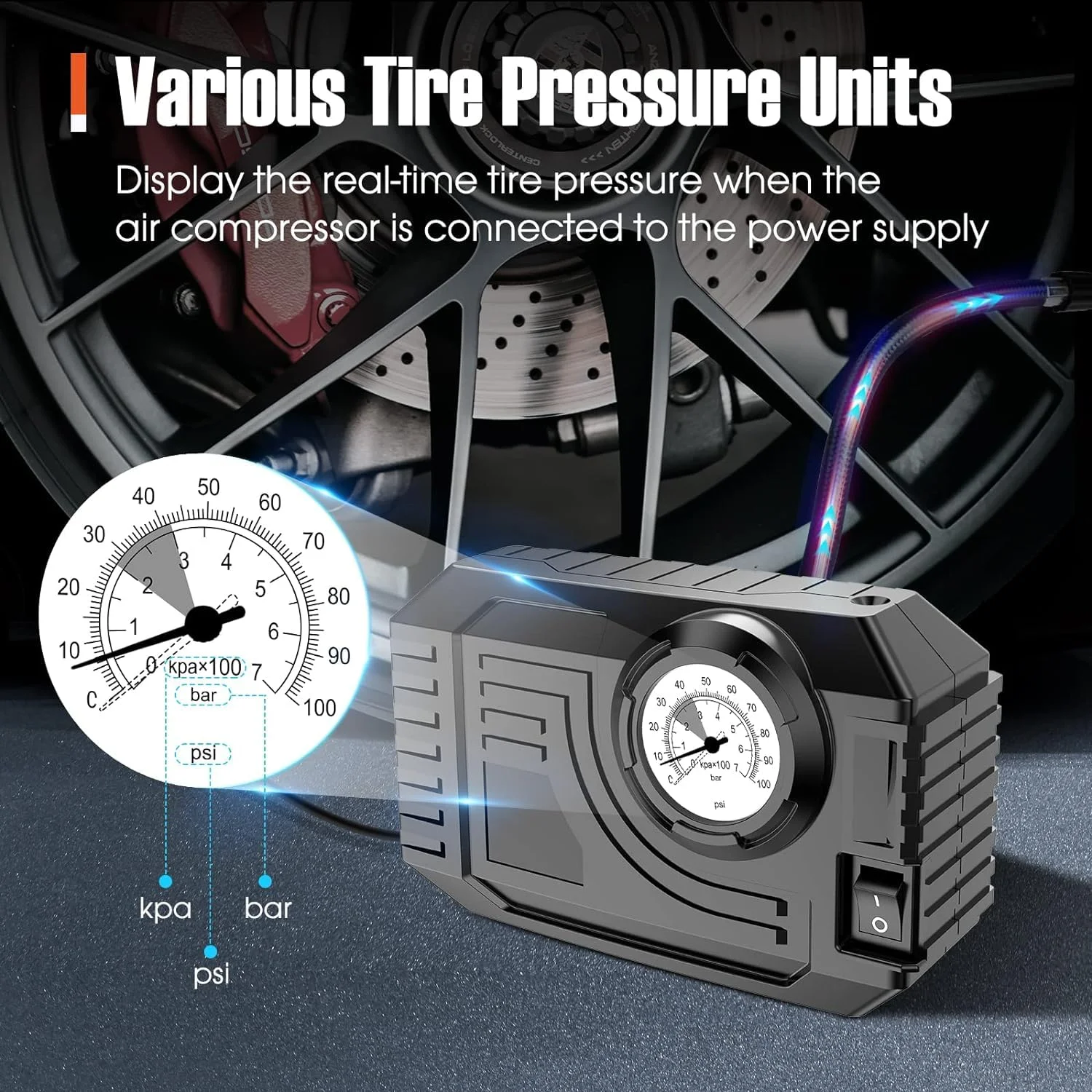 Tire Inflator Portable Air Compressor 12V Small Air Pump for Car Tires Bicycle Balloons, Cars, Bike, Bicycles and Other Inflatables with LED Light (12V)