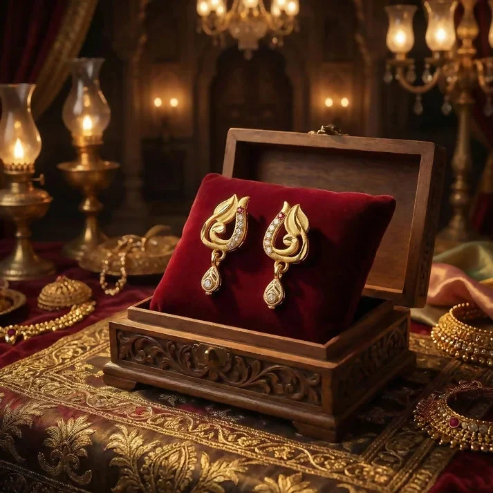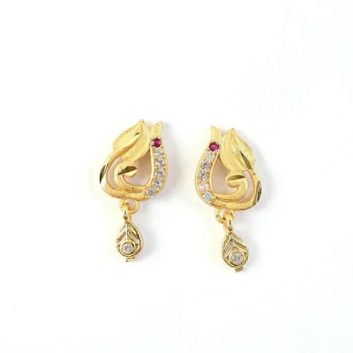 Be the first to review Traditional Curved Leaf Style Gold Stud Earrings With Crystal Detailing And Drop Charm!
