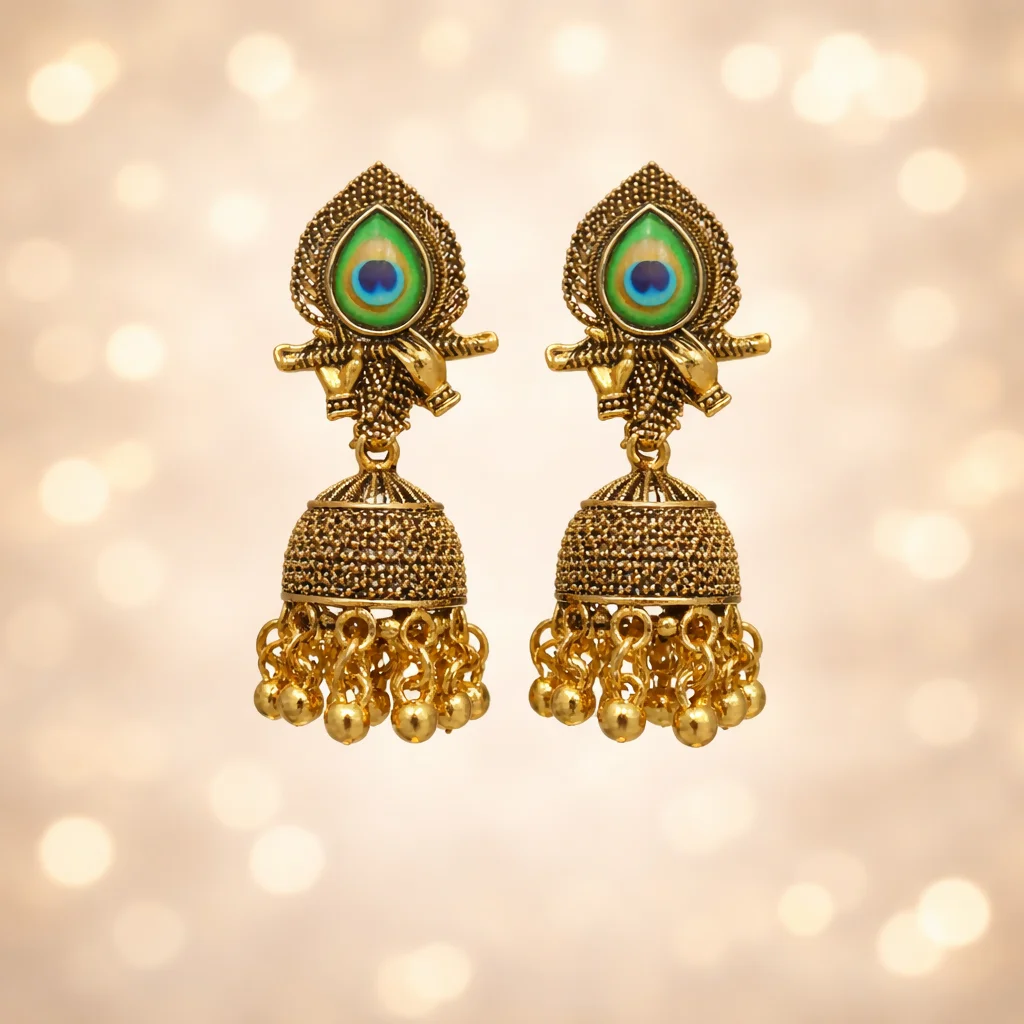 Be the first to review Traditional Elegant Oxidised Gold Plated Peacock Design Jhumka Earrings for Women!
