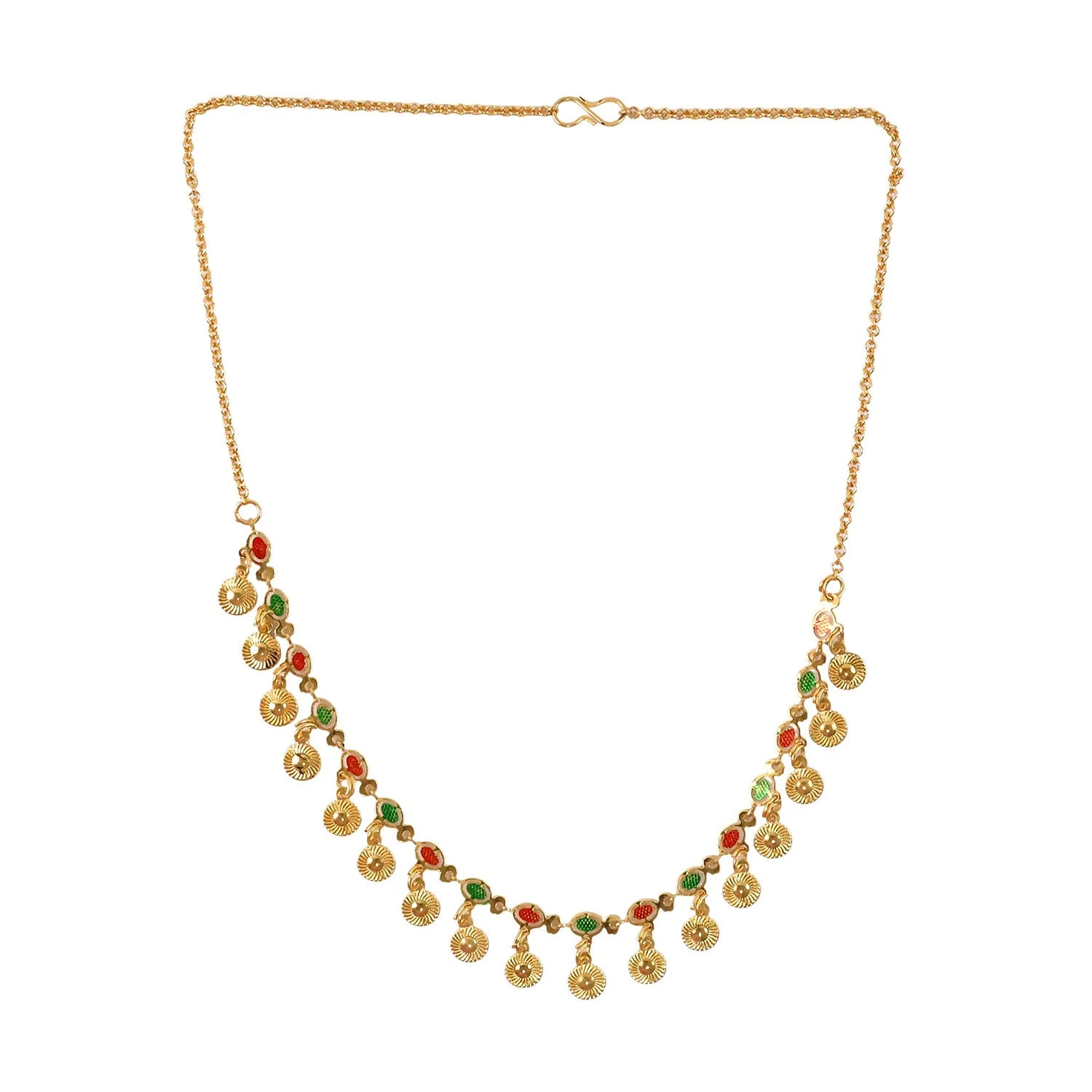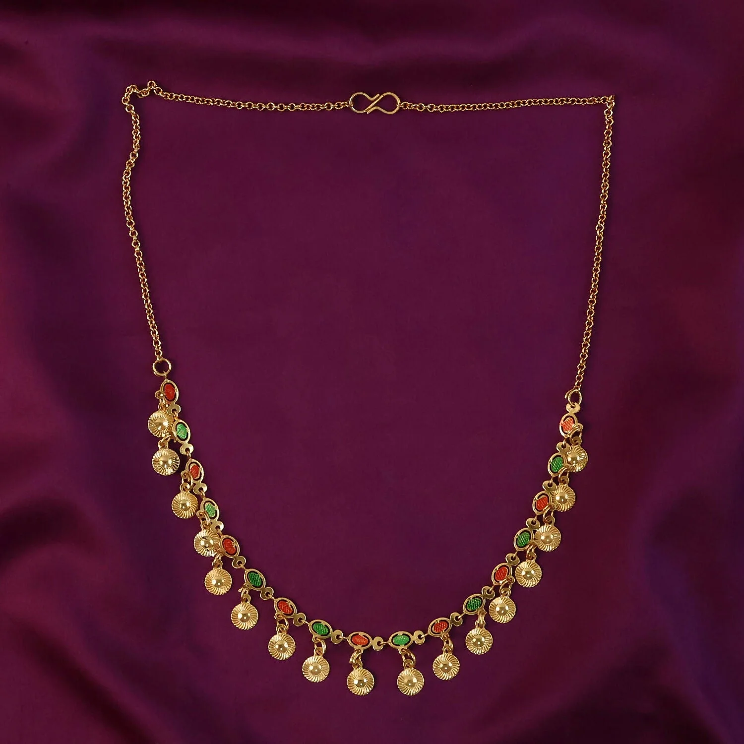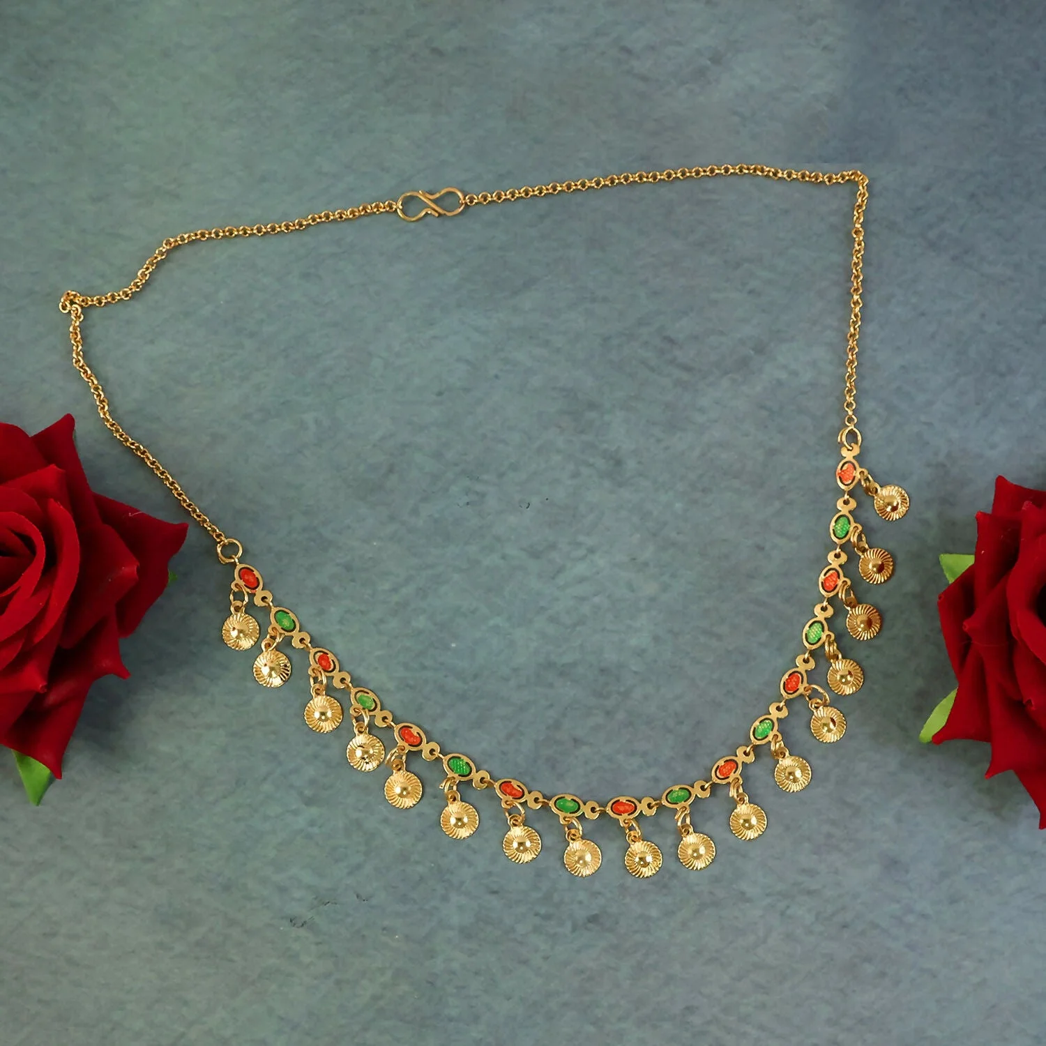Be the first to review Traditional Gold Charm Necklace with Multicolor Stone Drops!