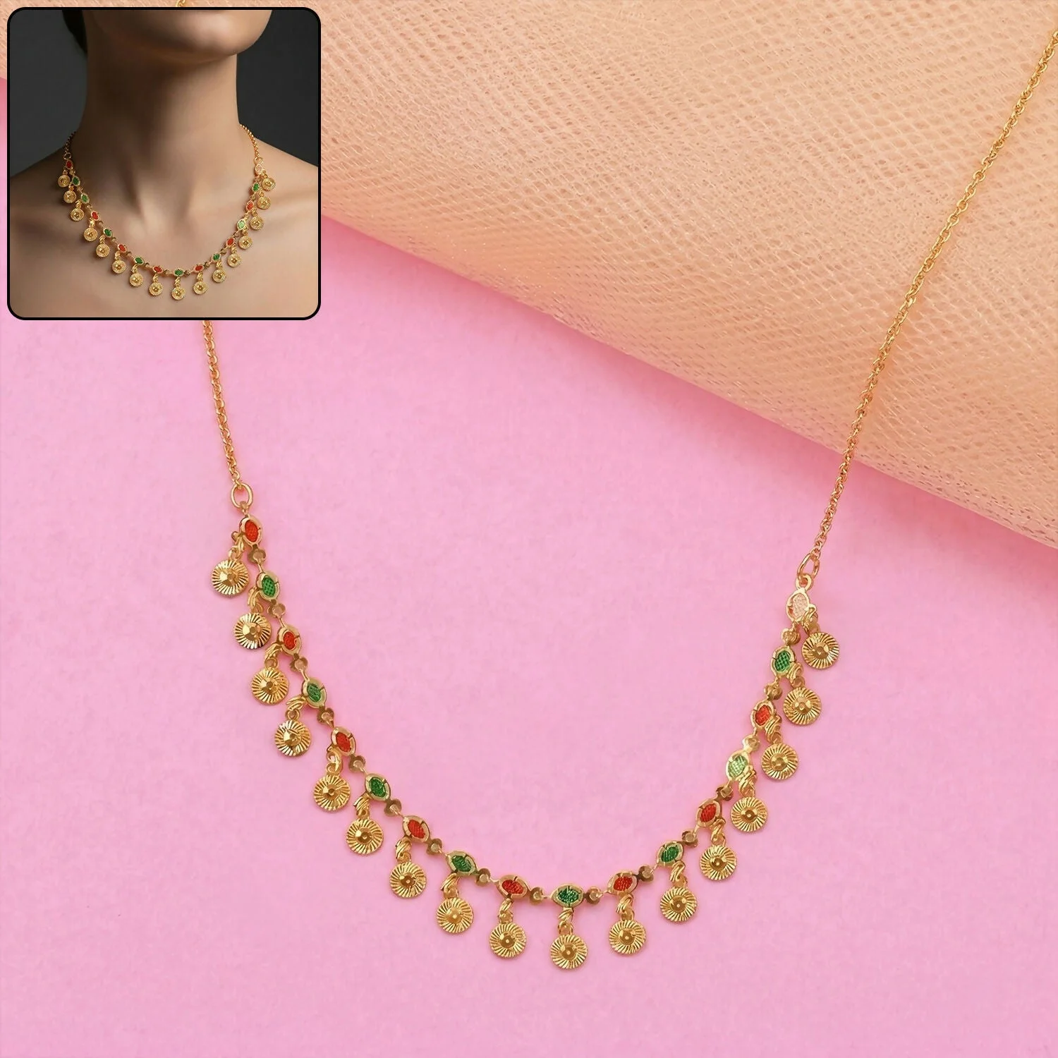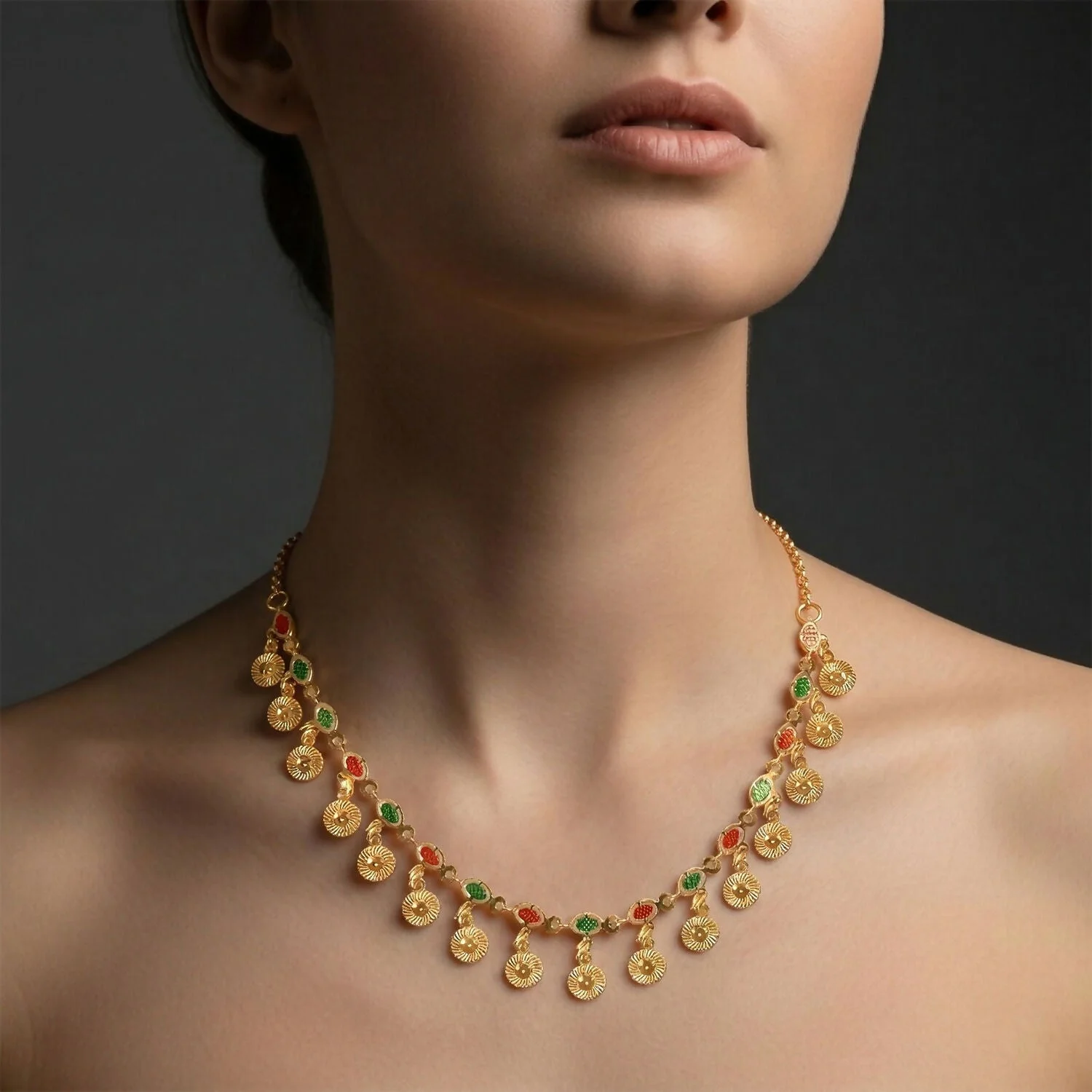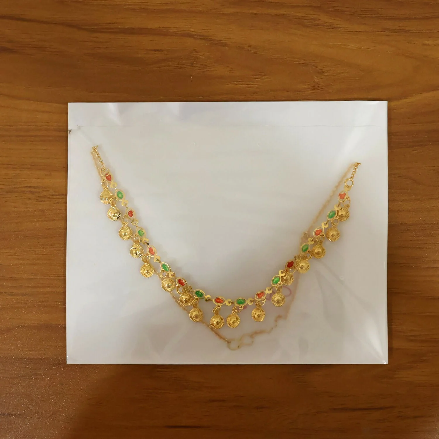 Be the first to review Traditional Gold Charm Necklace with Multicolor Stone Drops!
