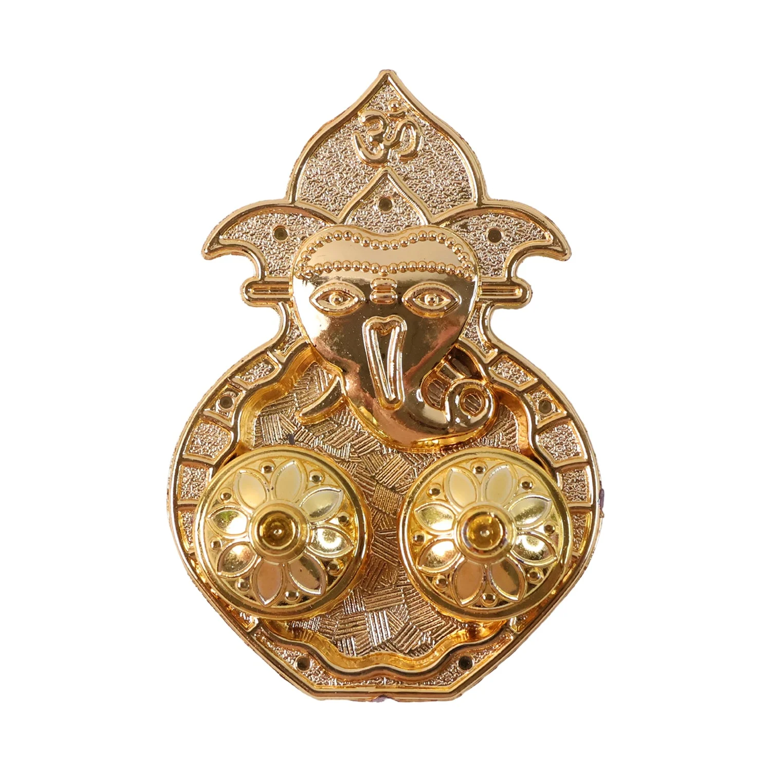 Enhance your spiritual space with this Traditional Golden Lord Ganesha Kumkum Dish, a beautifully crafted religious accessory designed to combine art, devotion, and tradition. Featuring an intricate embossed design with a detailed Lord Ganesha motif, this dish symbolizes prosperity and divine blessings. The elegant golden finish adds a radiant touch to your pooja decor, while the two small round compartments are perfect for storing kumkum, chandan, roli, haldi, or rice during religious rituals.