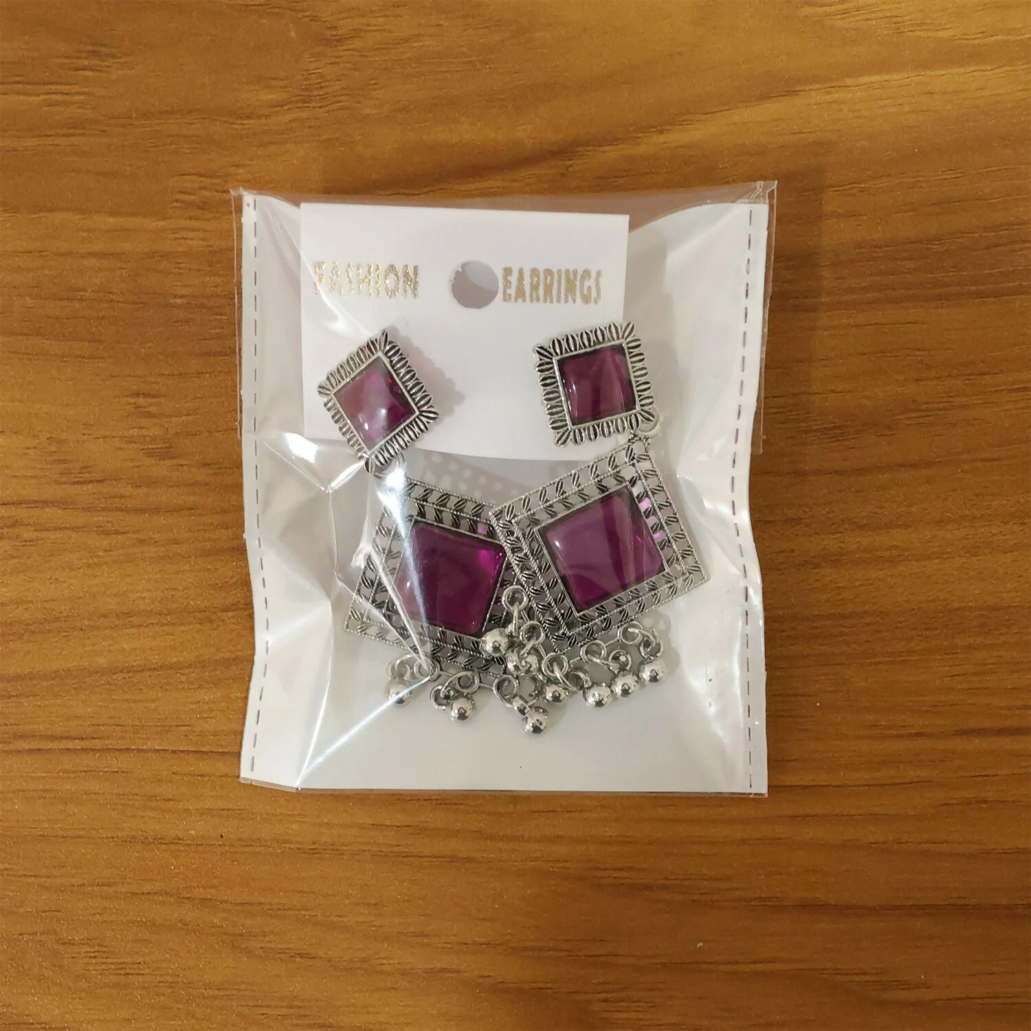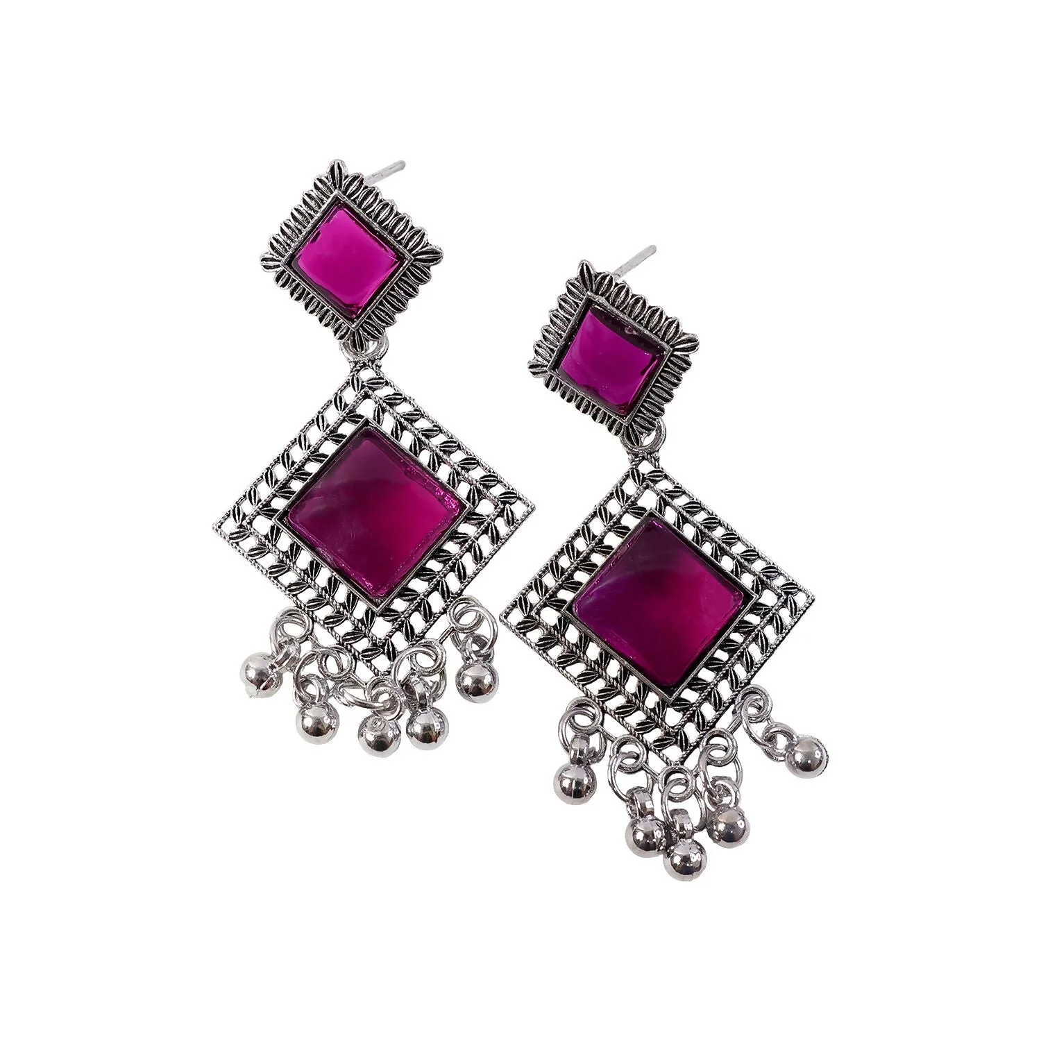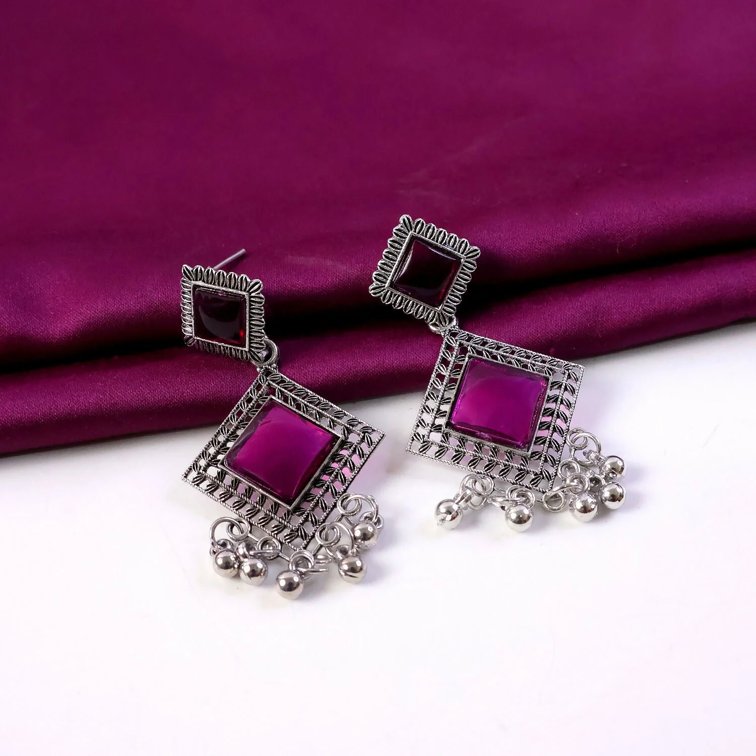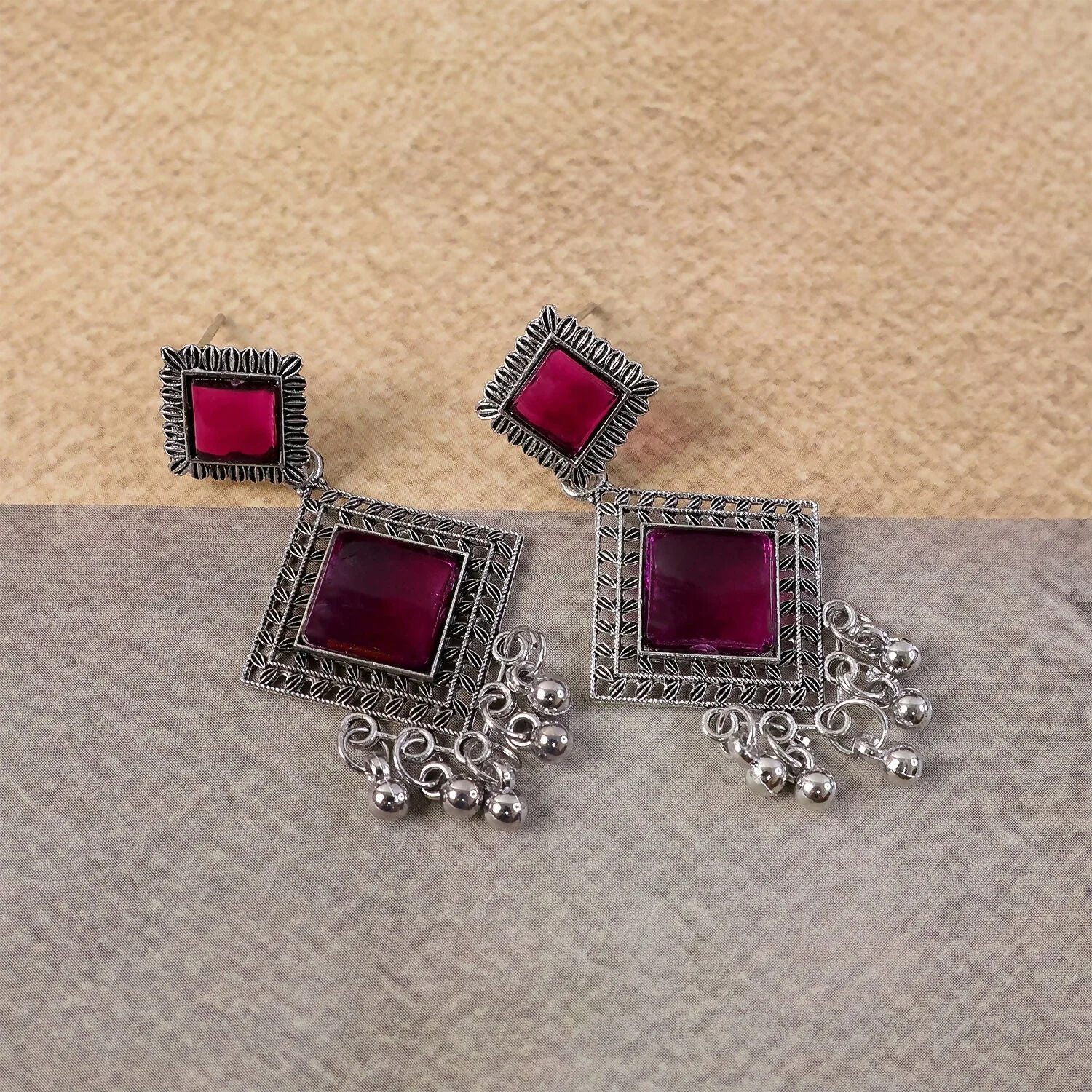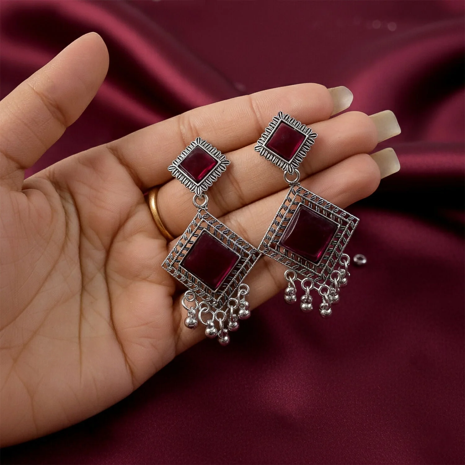 Be the first to review Traditional Indian Oxidised Dangler Earrings with Square Red Monalisa Stones!