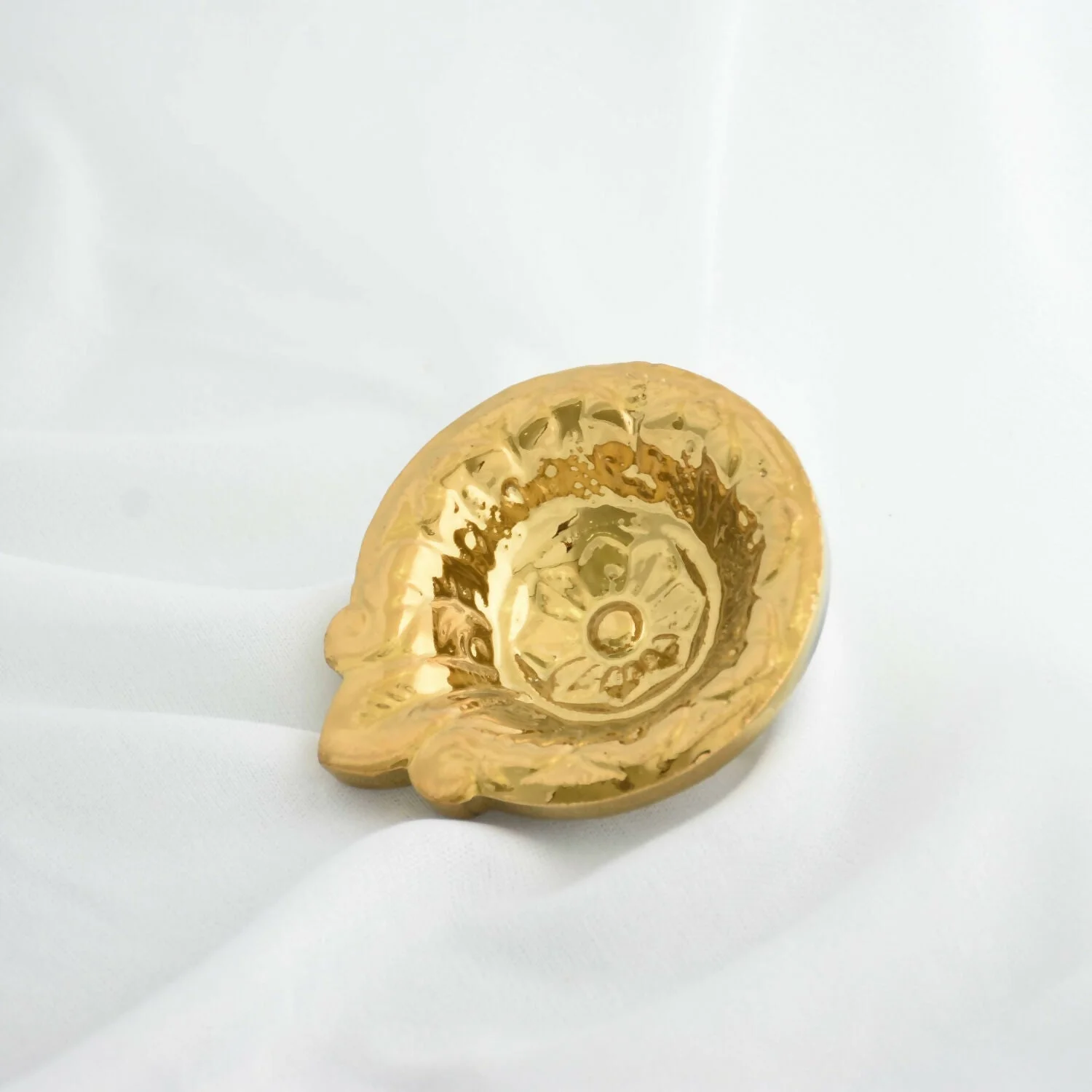 Add elegance and spiritual charm to your home with this beautifully crafted decorative ceramic diya featuring a luxurious gold PVD plating and metallic finish. Designed with intricate detailing and a traditional shape, this diya brings a classic festive appeal while maintaining a modern decorative touch. The glossy metallic surface reflects light beautifully, creating a warm and inviting glow during rituals and celebrations.