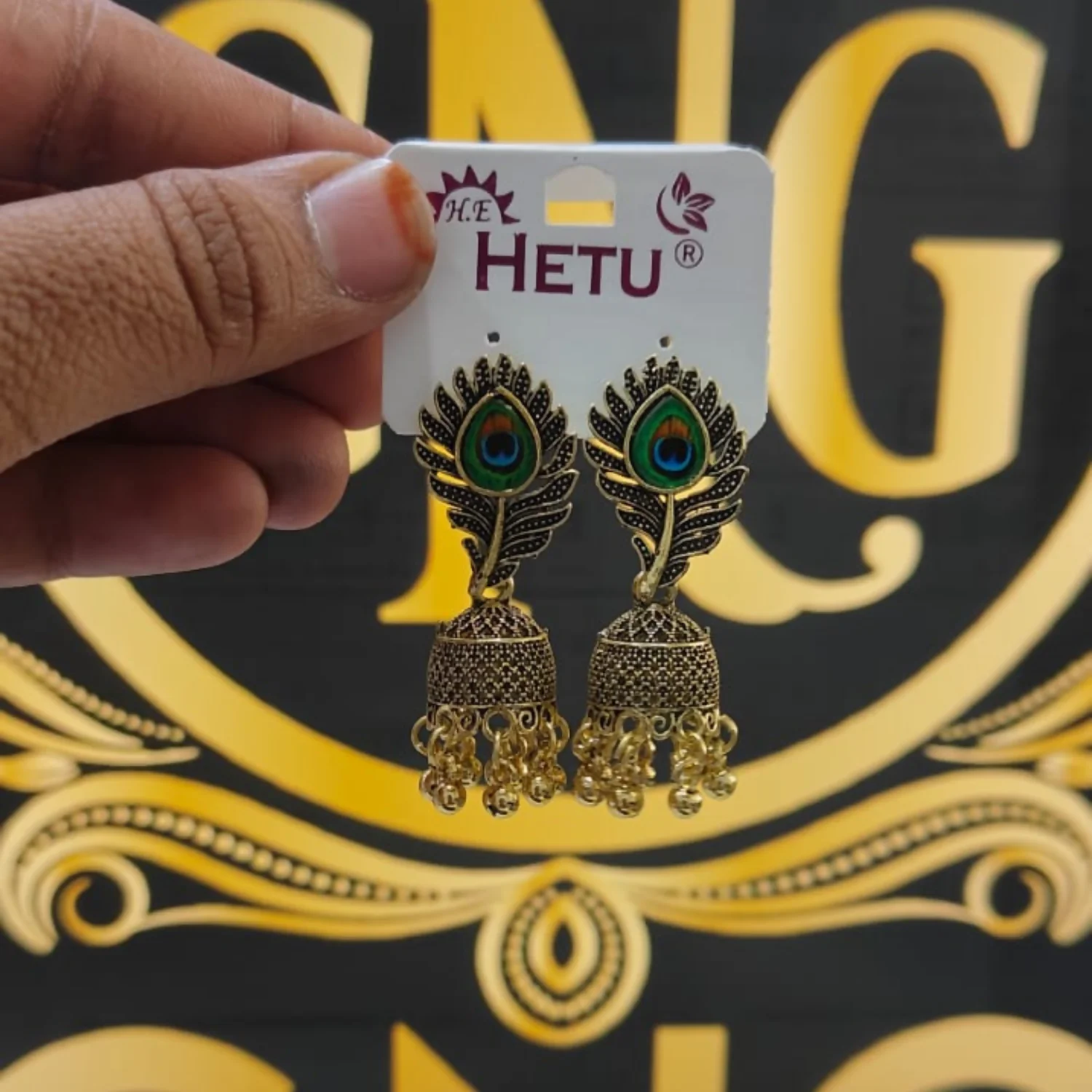 Be the first to review TRADITIONAL OXIDISED PEACOCK FEATHER JHUMKA EARINGS IN!