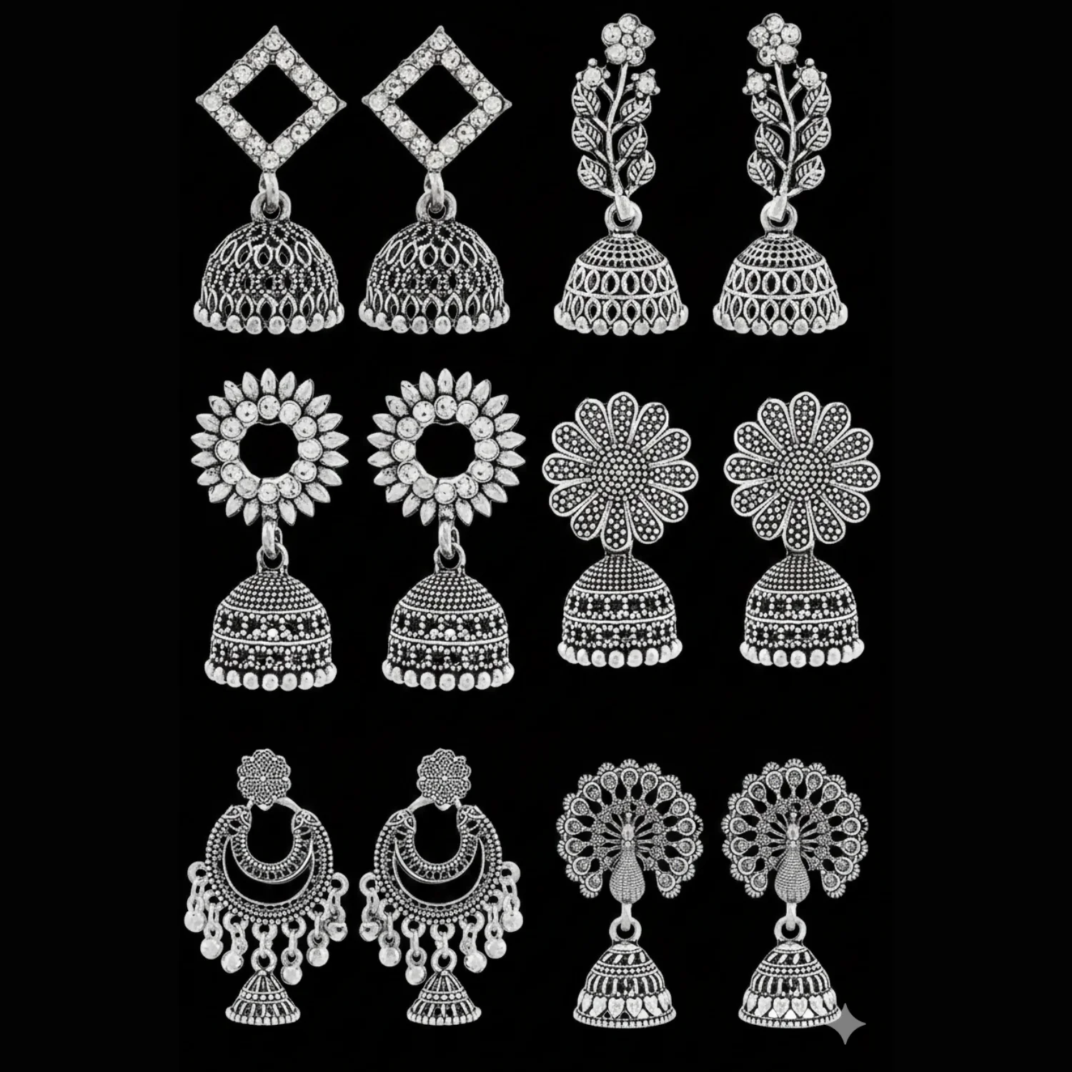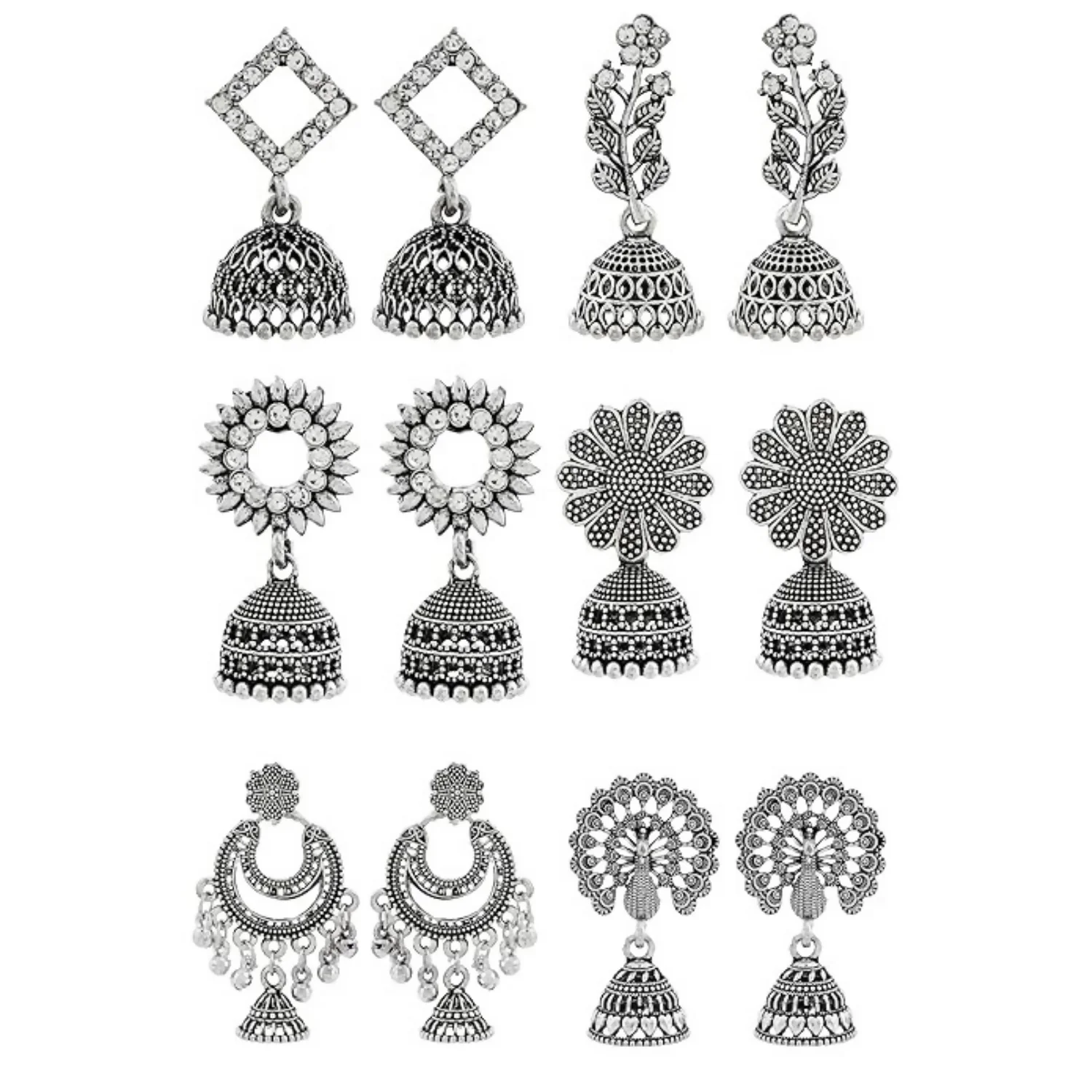 Be the first to review Traditional Oxidised Silver Jhumka Earrings Set Stylish Big Jhumki (6Pair Combo)!