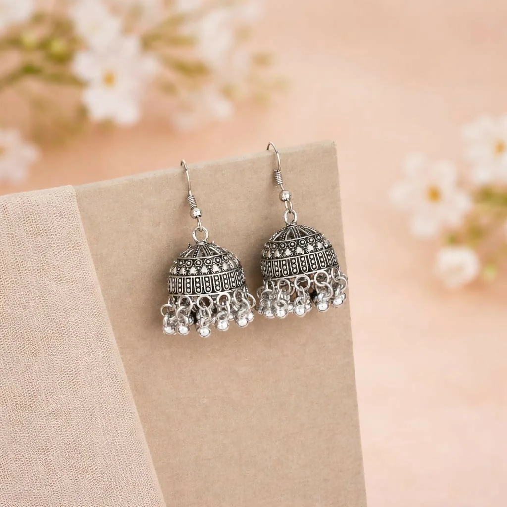Traditional Oxidized Silver Jhumka Earrings ✨