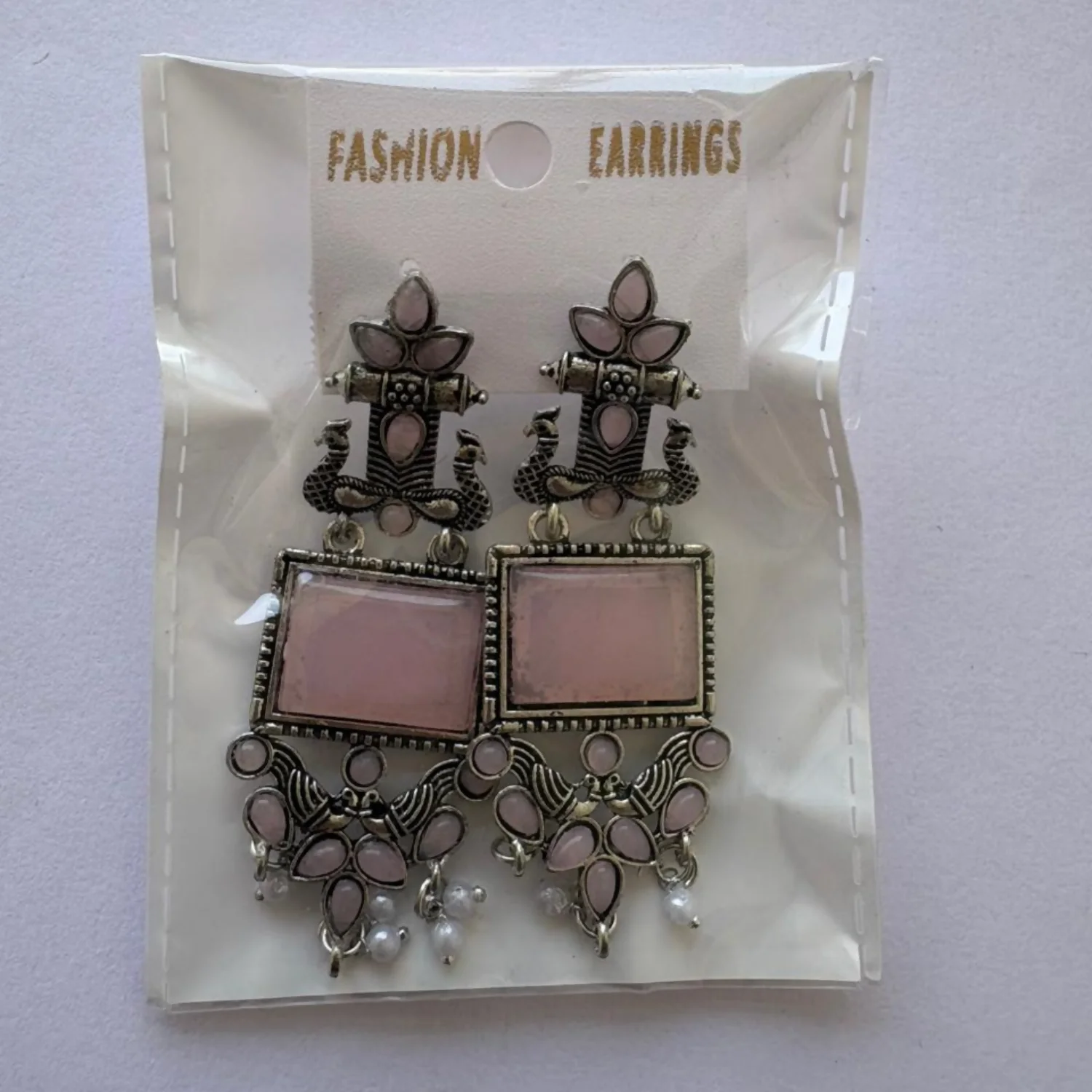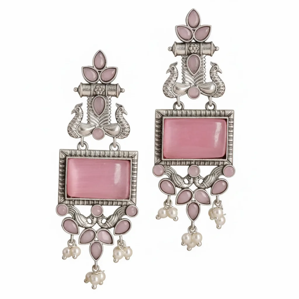Be the first to review Traditional Oxidized Silver Pink Stone Pearl Drop Earrings!