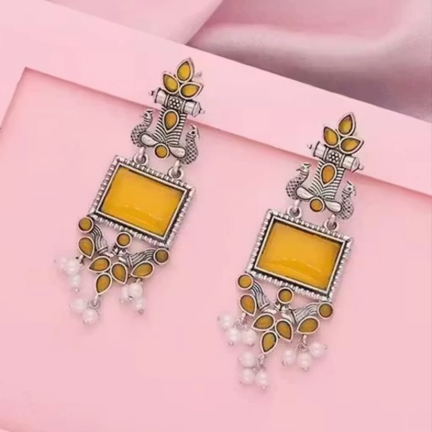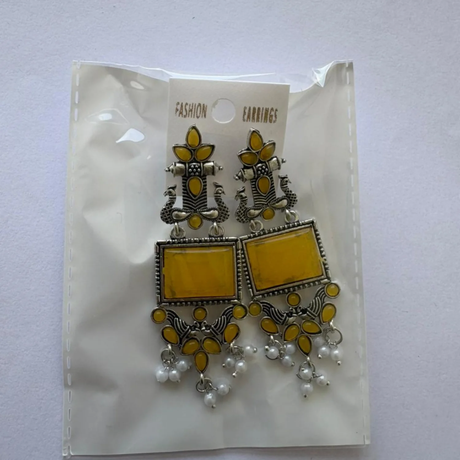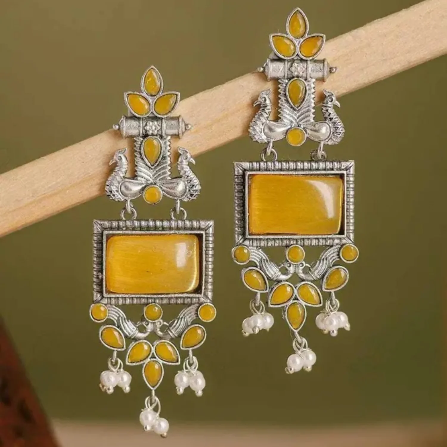 Be the first to review Traditional Oxidized Silver Yellow Stone Pearl Drop Earrings!