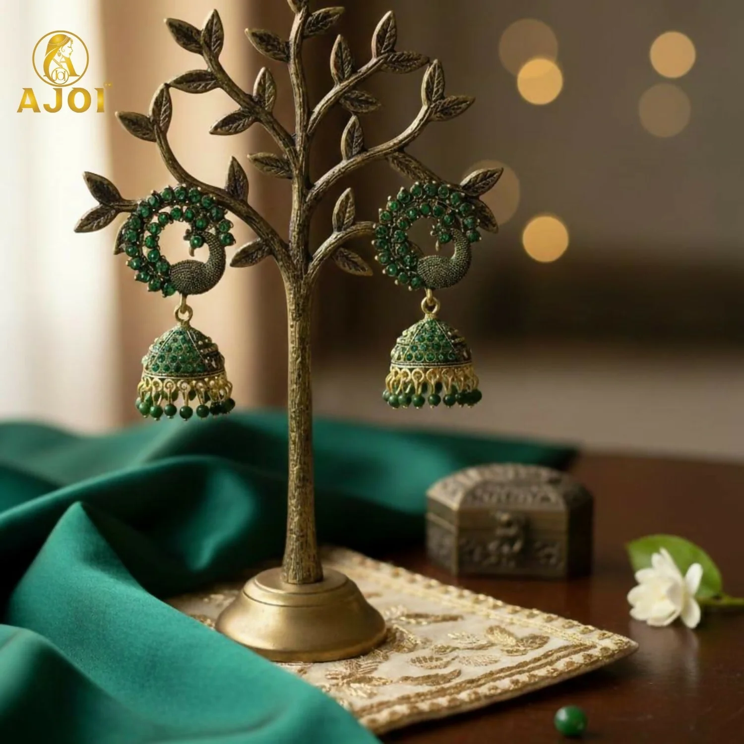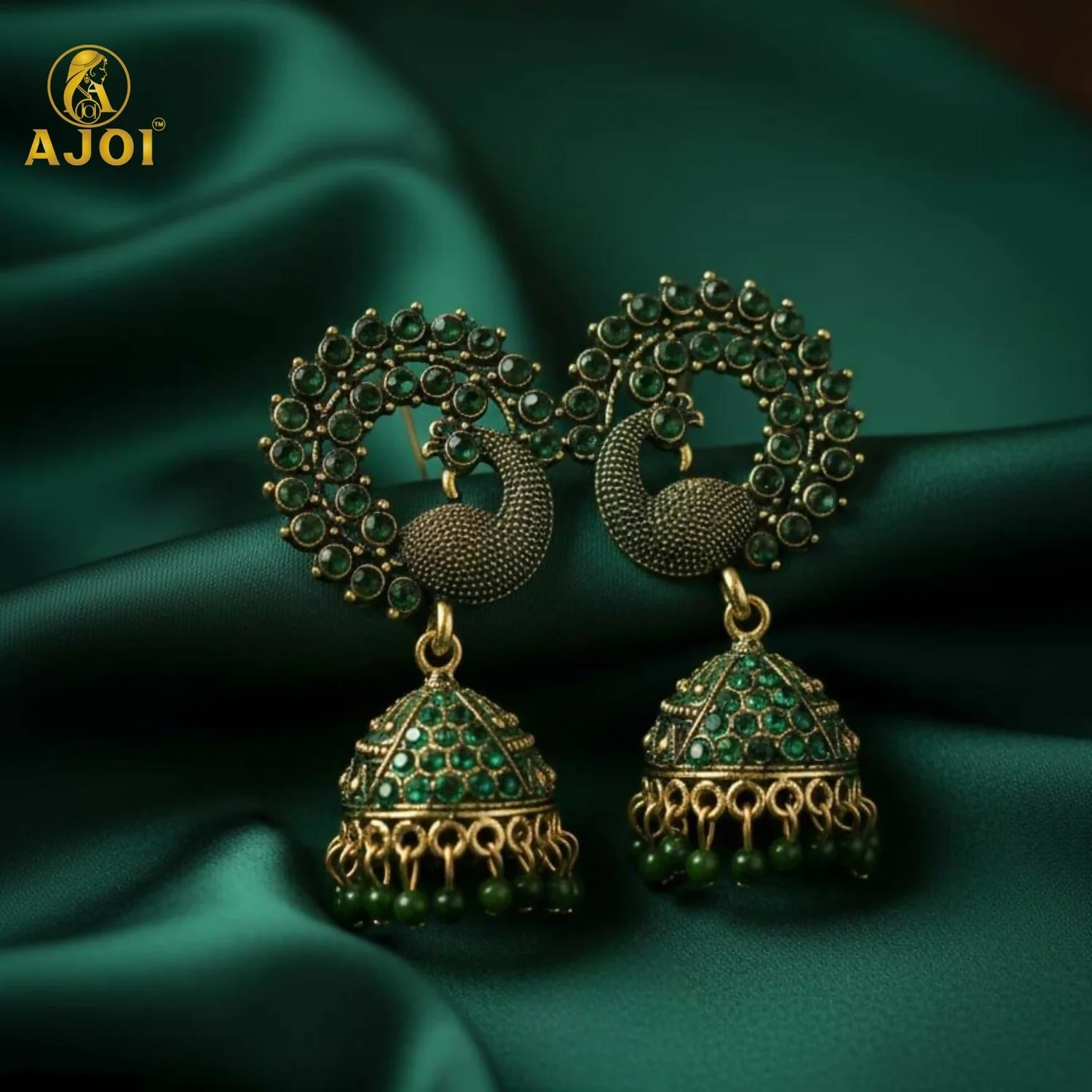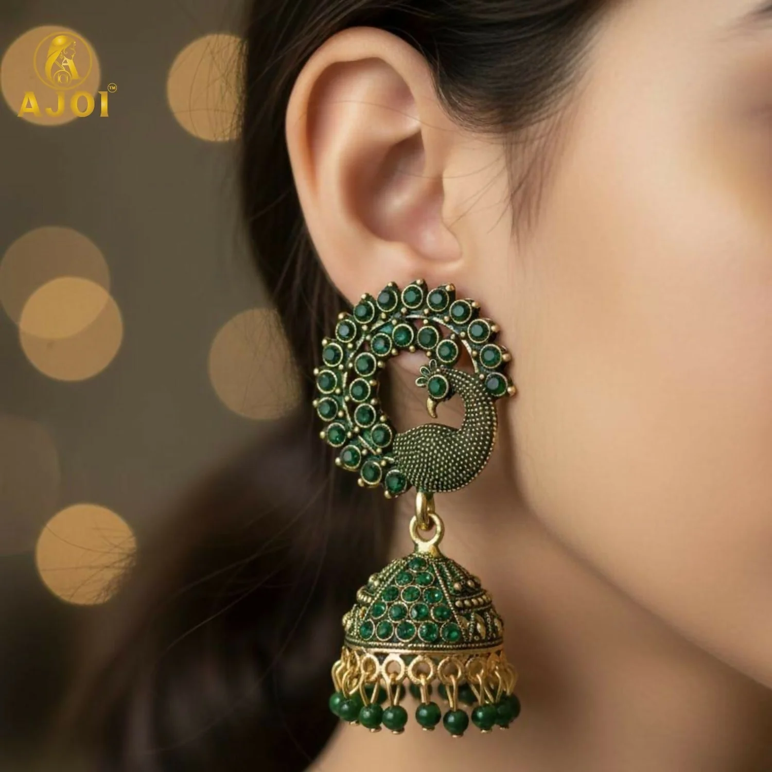 ✨ Design: Peacock Motif with Jhumka Drop