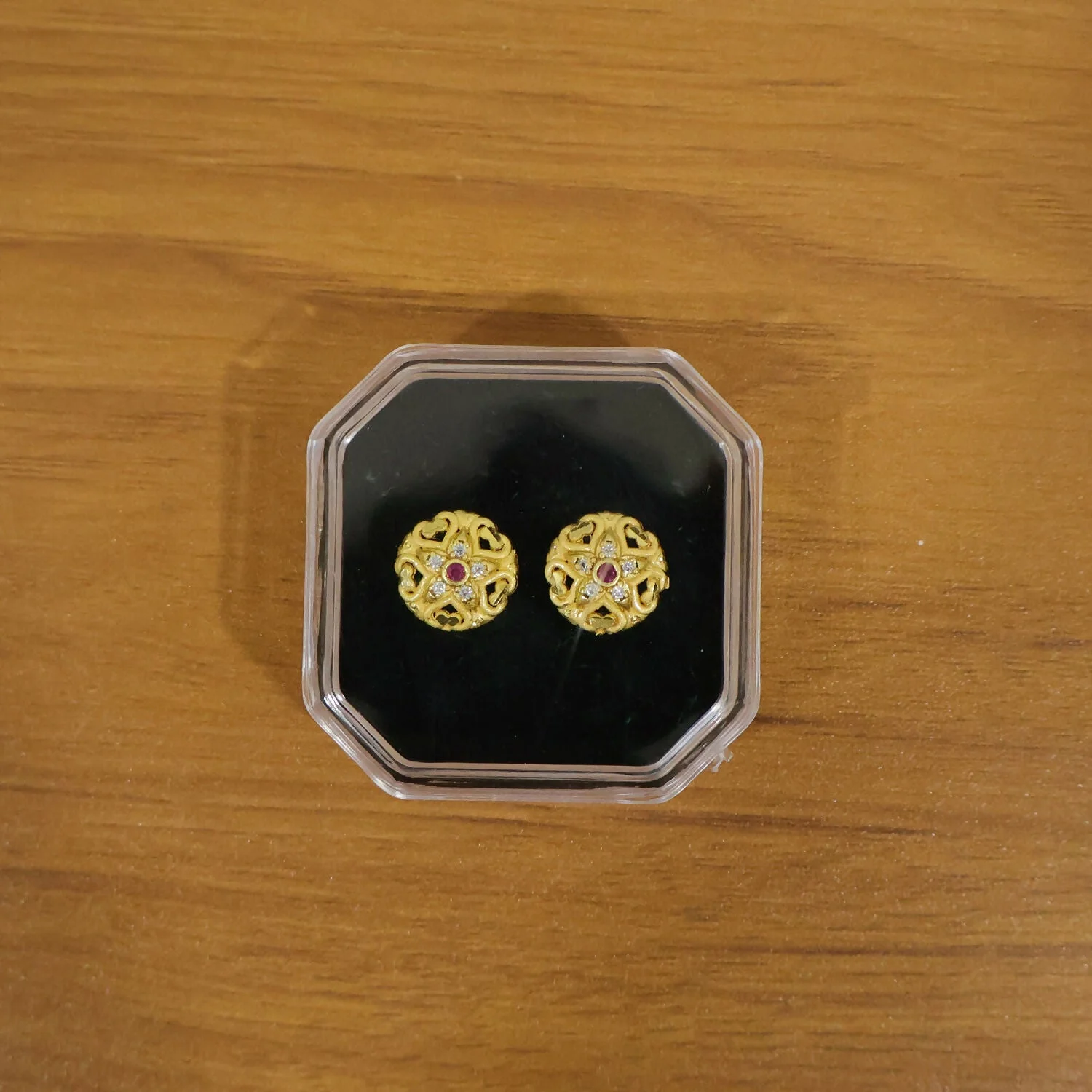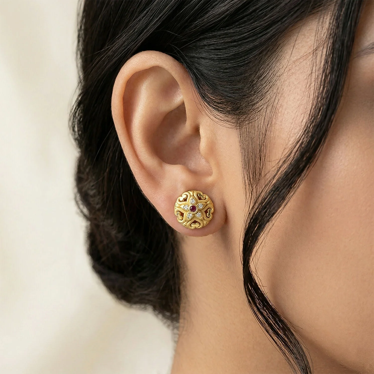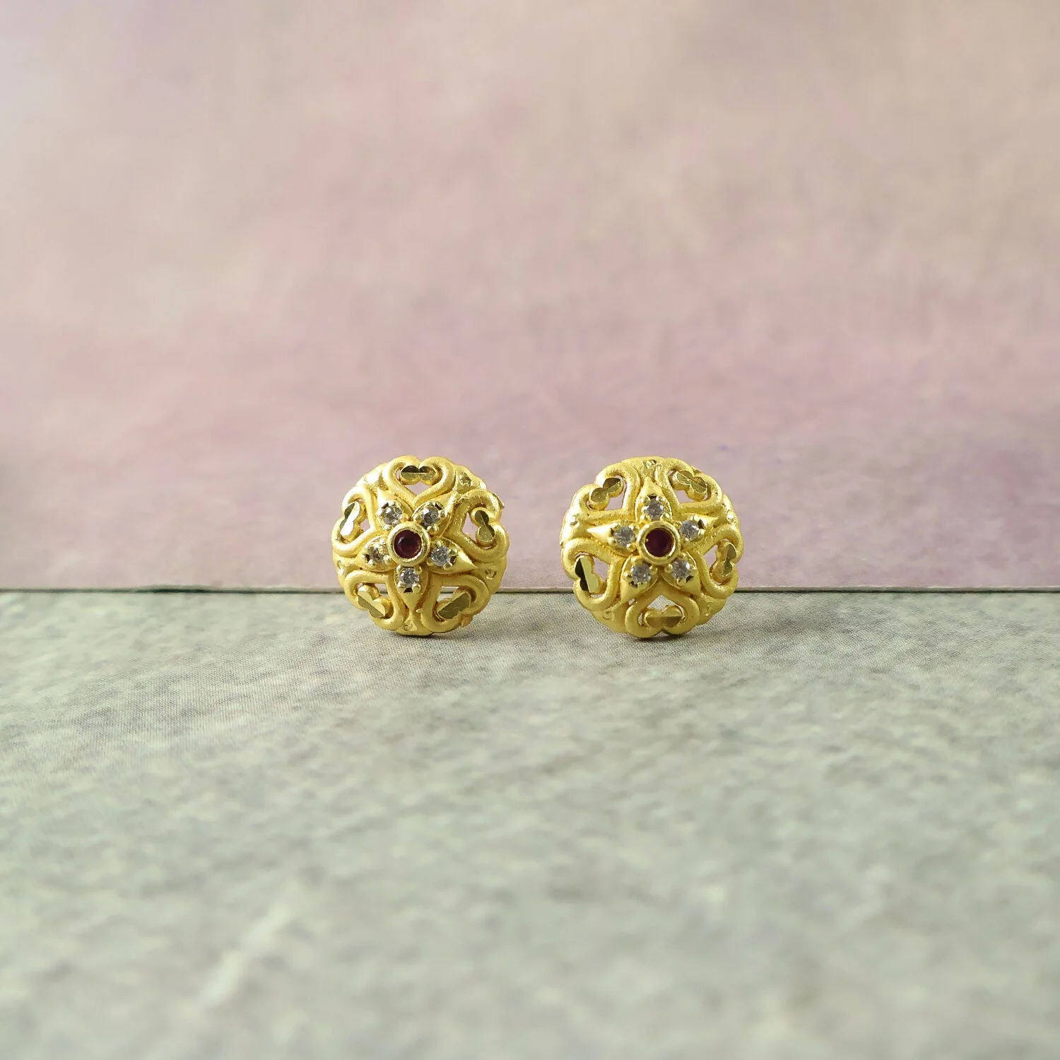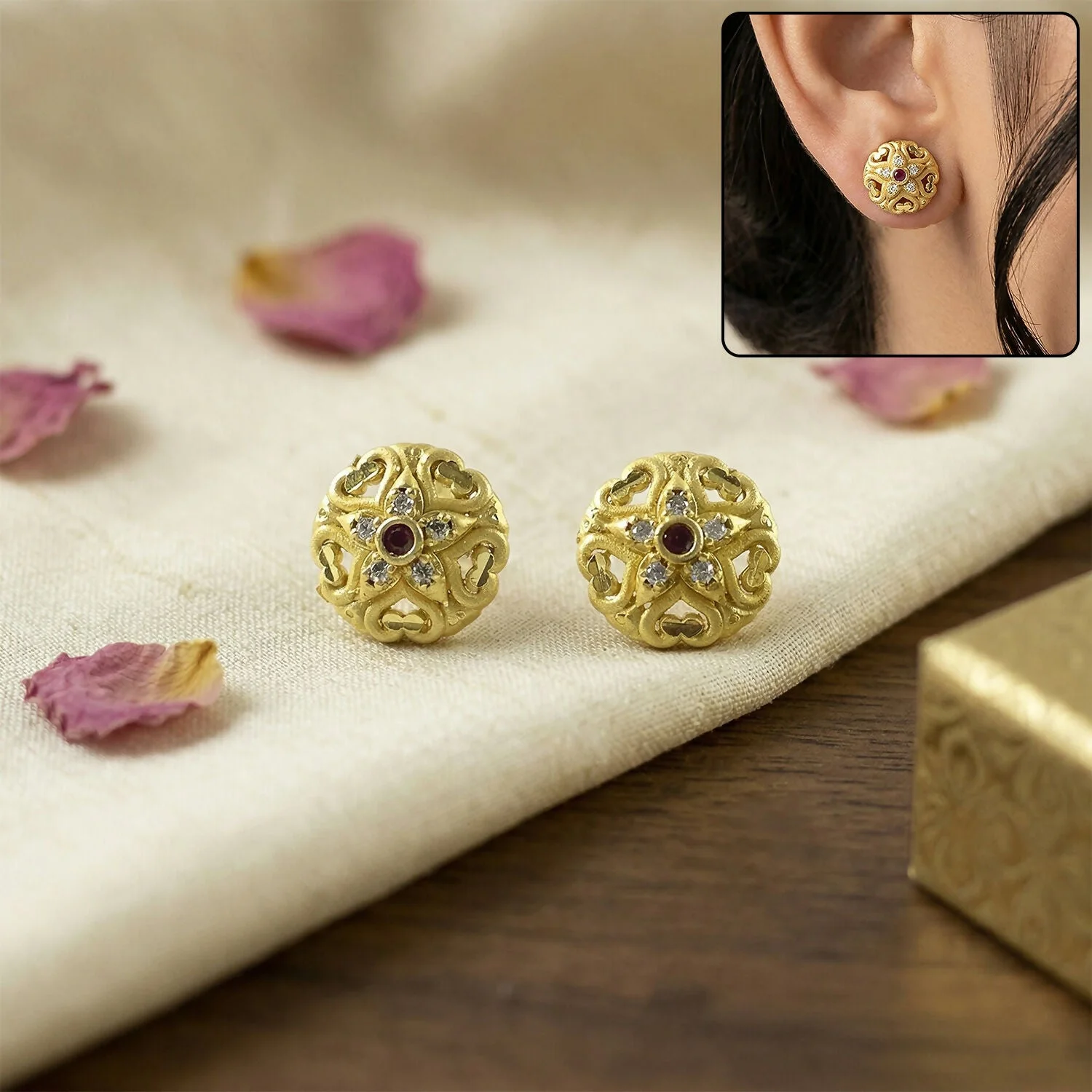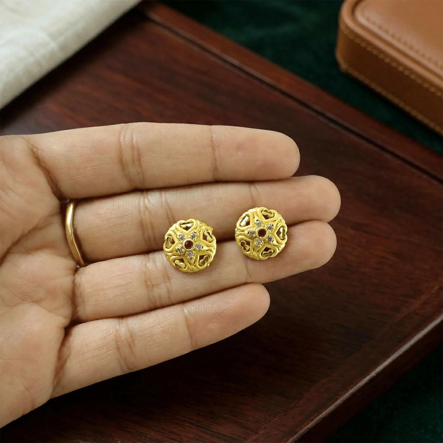 Be the first to review Traditional Round Gold Stud Earrings with Intricate Floral Work!