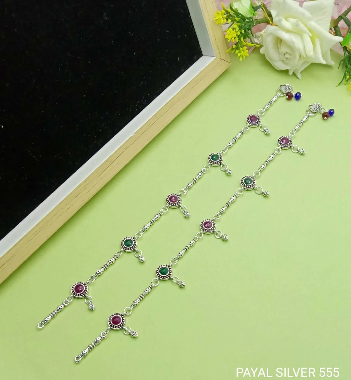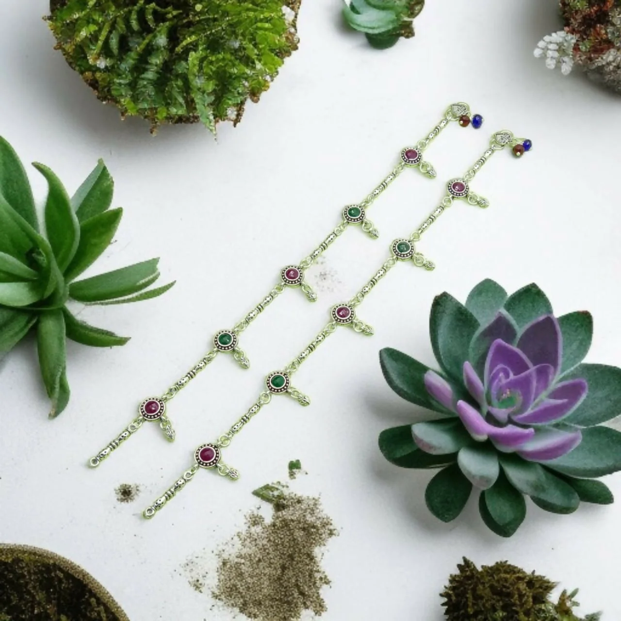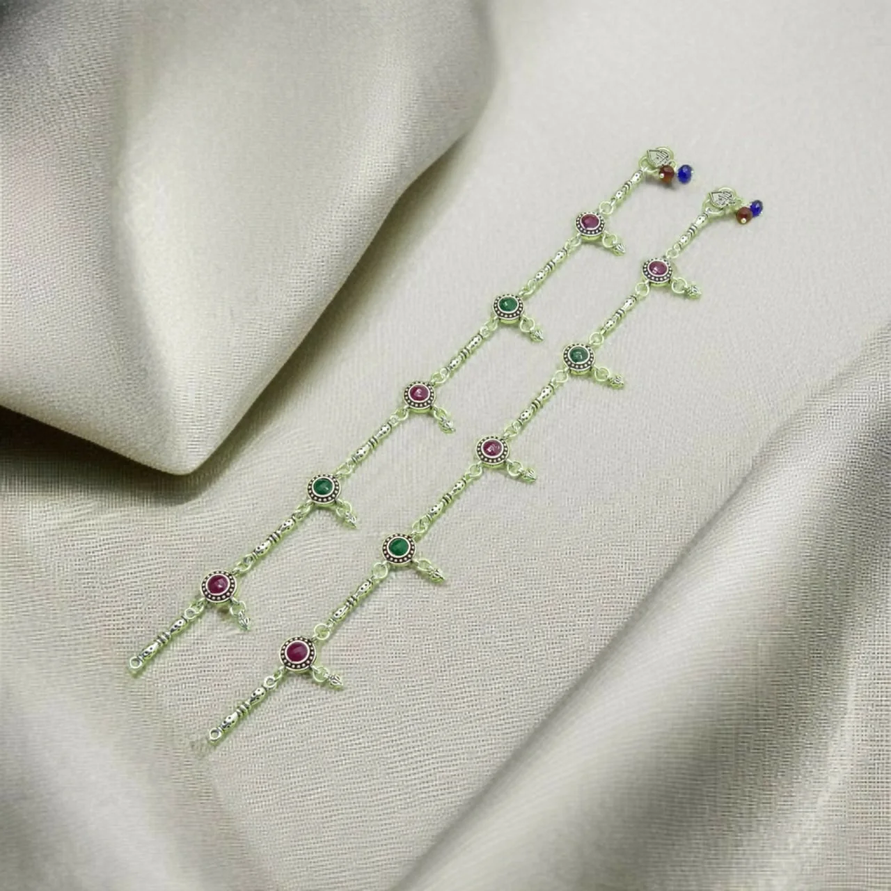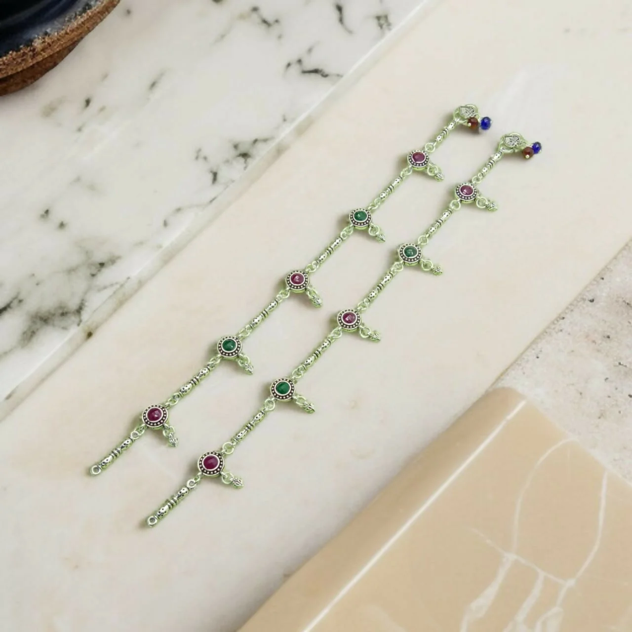 Be the first to review Traditional Silver Anklet Set with Red & Green Stones!