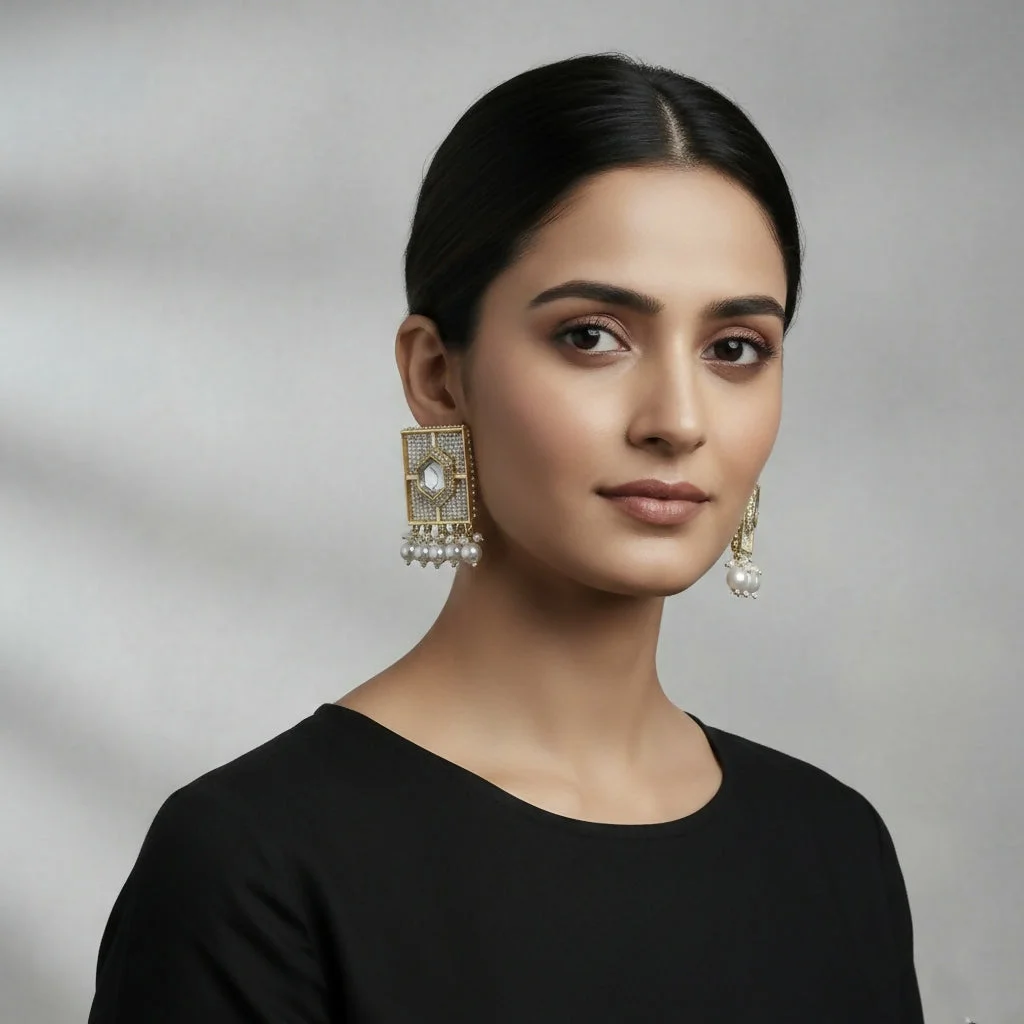 Elevate your traditional attire with these grand Kundan Jhumka Earrings, designed for those who love a blend of intricate detail and classic heritage.