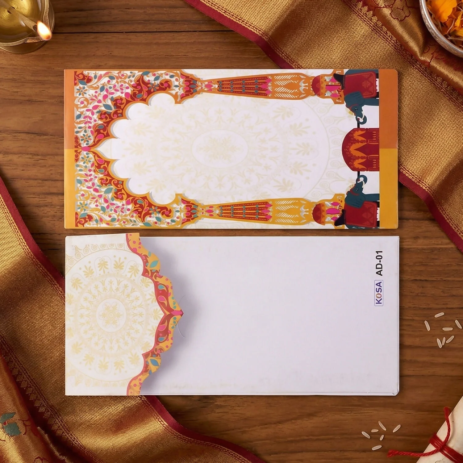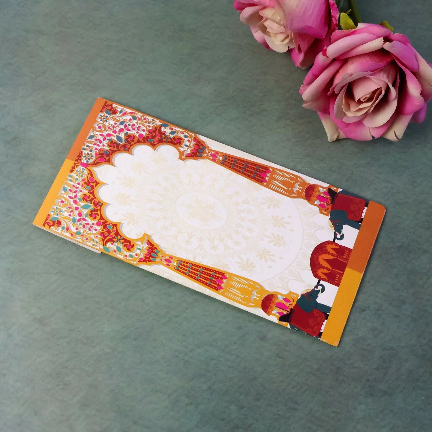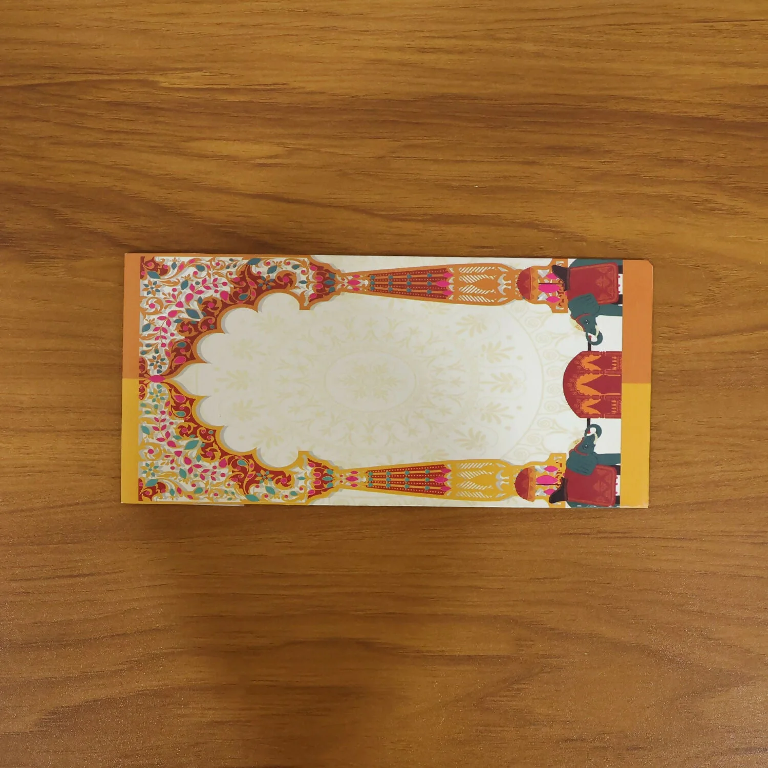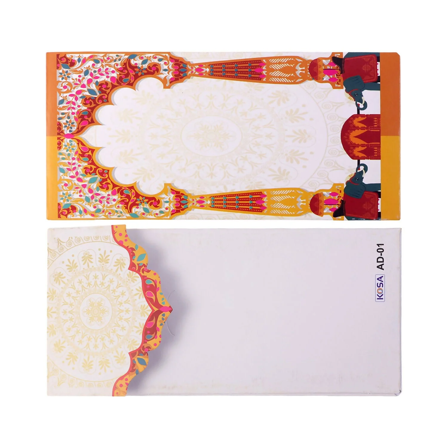 Present your blessings and gifts in a truly traditional and elegant way with these beautifully designed elephant theme money envelopes. Inspired by classic Indian wedding elements, these envelopes feature intricate patterns along with symbolic elephant artwork that represents prosperity and good fortune. The vibrant and festive design makes them perfect for weddings, engagements, and cultural ceremonies where presentation matters as much as the gift itself. Each envelope is thoughtfully designed with a secure inner pocket to keep cash neatly in place while maintaining a premium appearance. Ideal for gifting to family, friends, and loved ones, these envelopes add a rich cultural touch and enhance the overall gifting experience with style and grace.