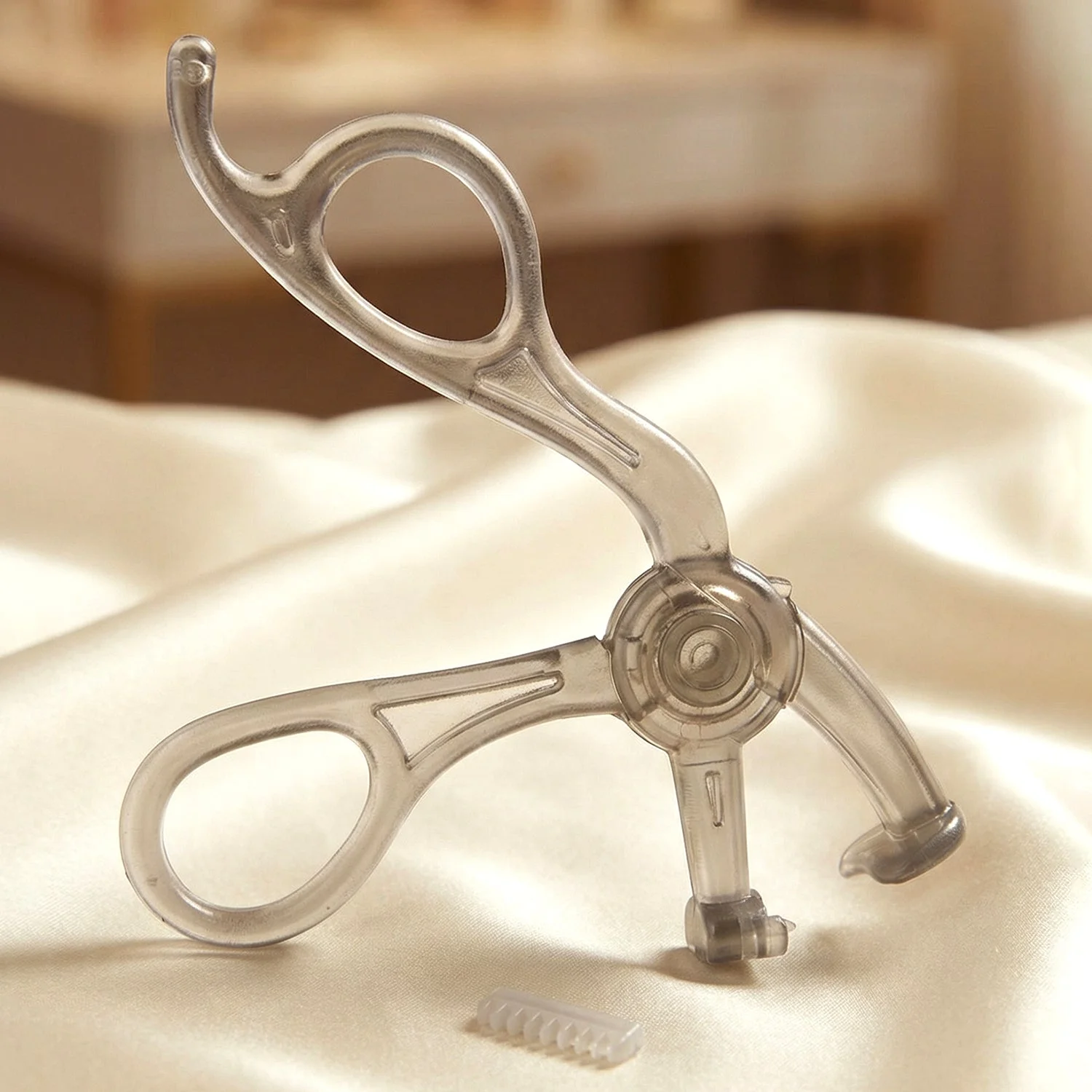 transparent eyelash curler, clear lash curler tool, finger grip eyelash curler, gentle lash lifting curler, manual eyelash curler, natural lash curling tool, eye makeup accessory, soft press lash curler, precision lash curler, no pinch eyelash curler, ergonomic lash curler, lightweight eyelash curler, everyday lash styling tool, portable eyelash curler