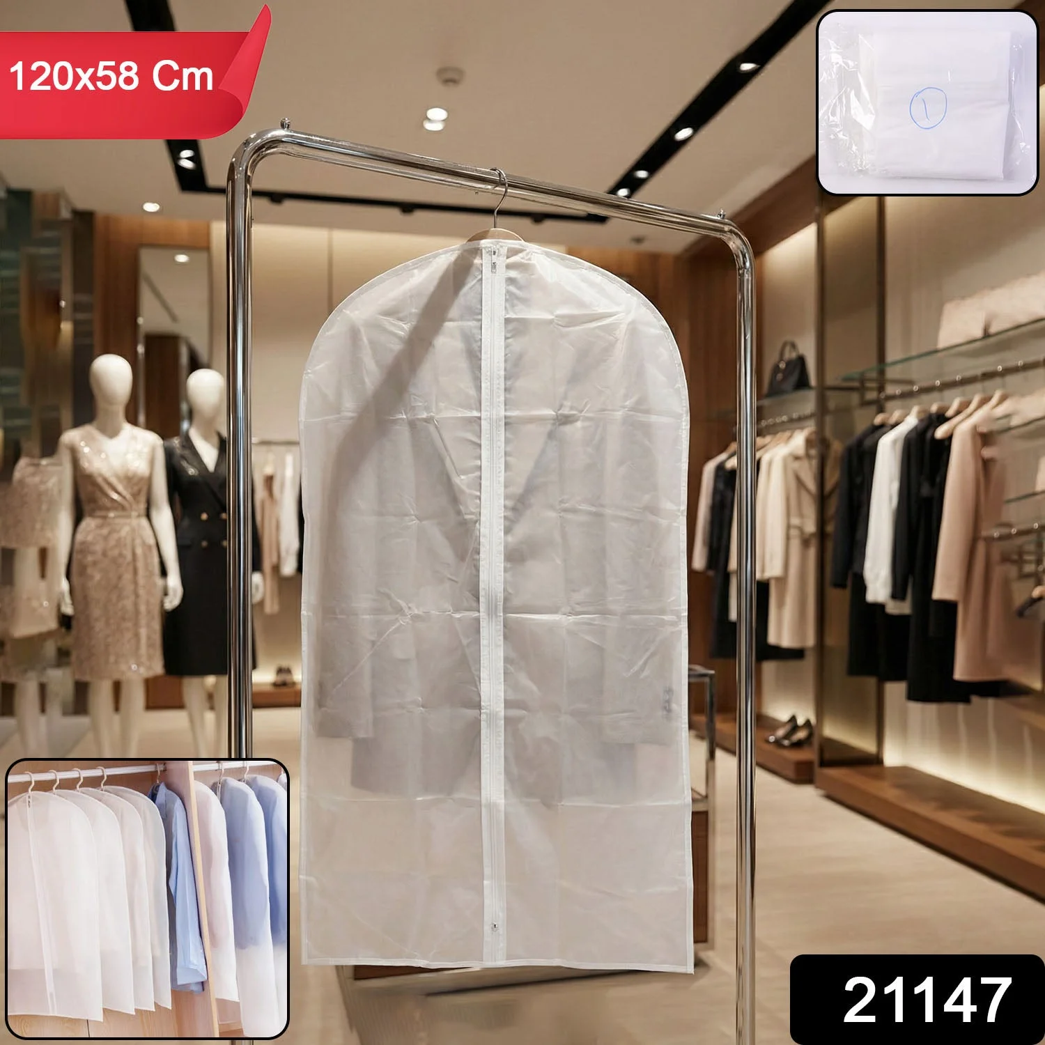 Protects garments from dust, dirt, and moisture