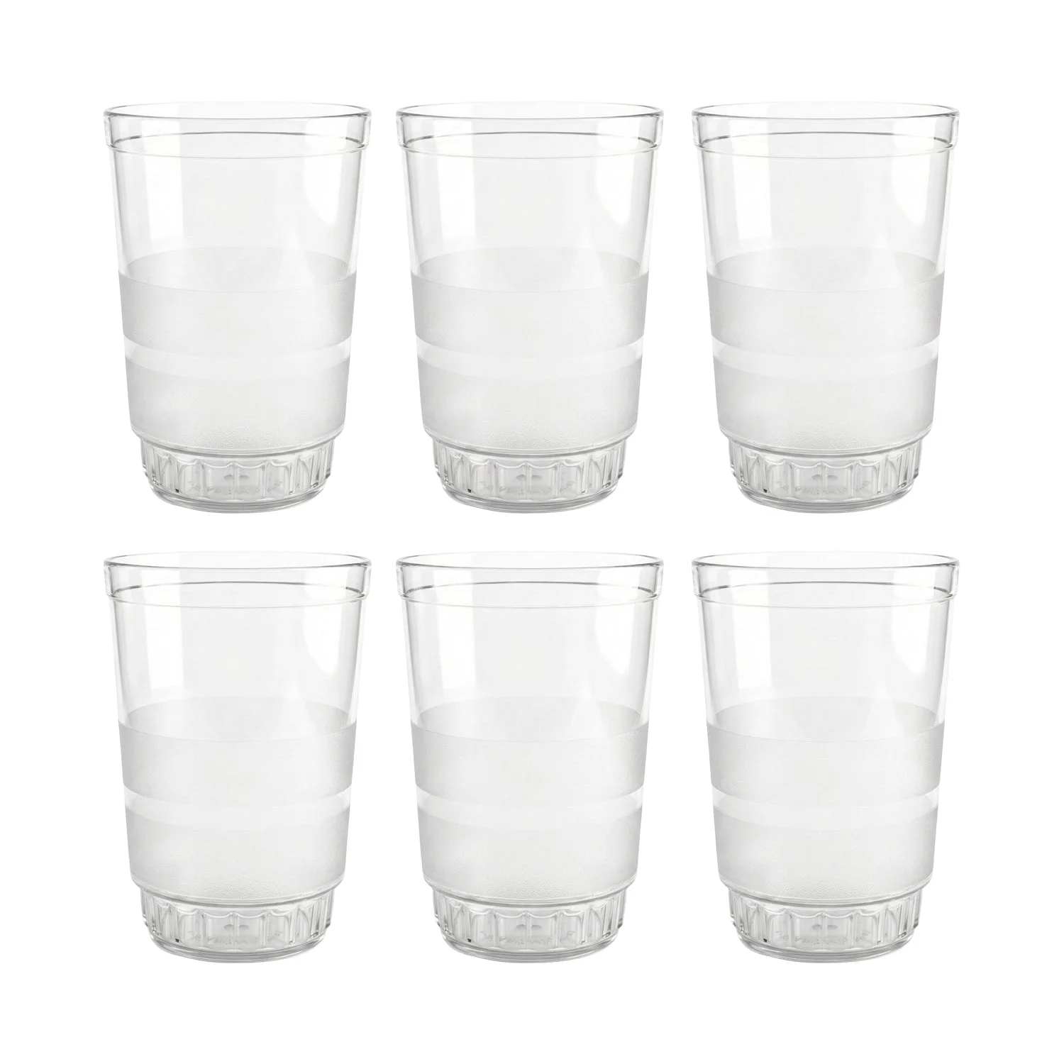 Transparent Janta Drinking Glass Set with Frosted Grip Design for Water, Juice & Daily Beverages – 300 ML Each, Pack of 6 Glasses for Home & Kitchen Use