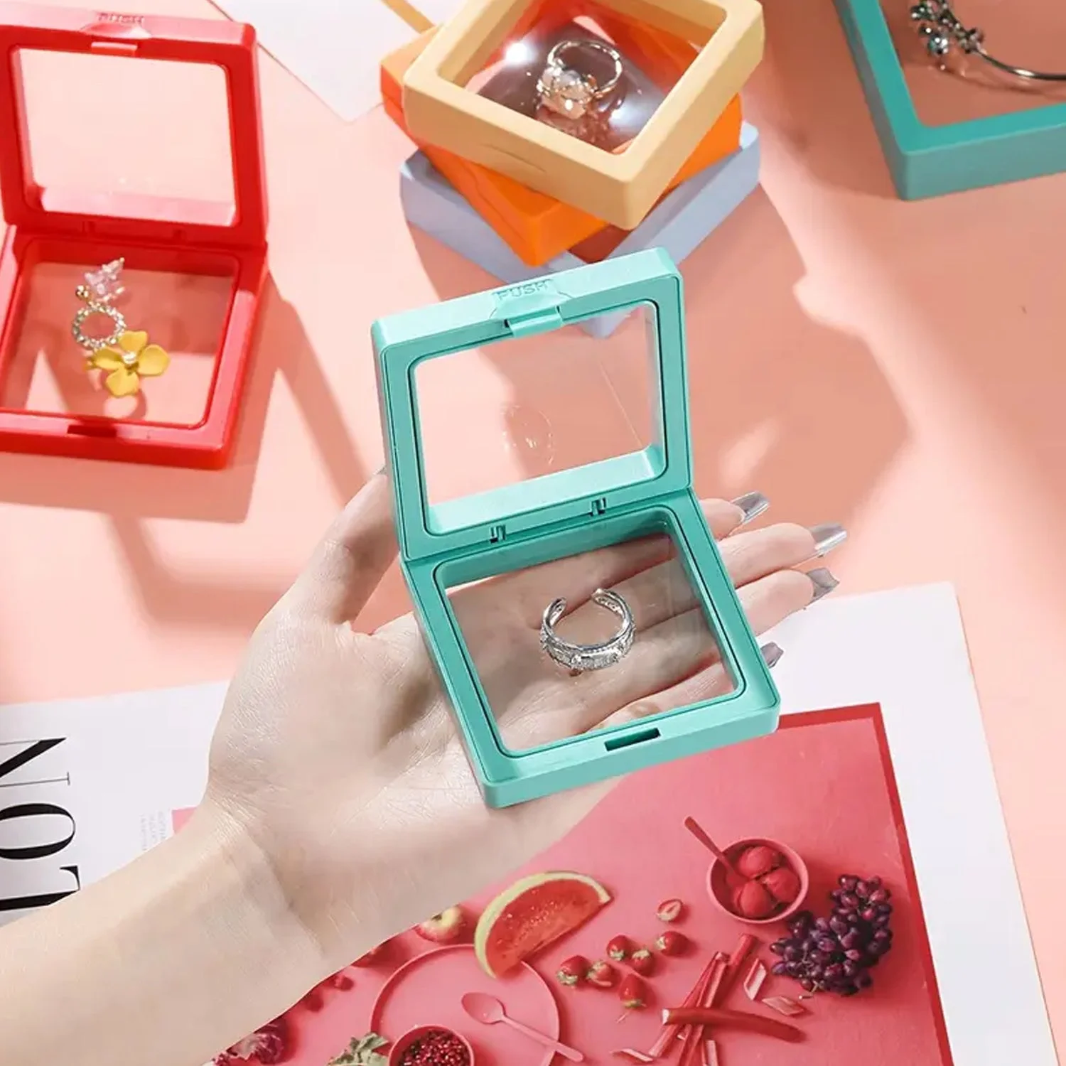 Transparent Jewellery Display Box (7x7 cm / 1 Pc) – Floating Frame Organizer for Rings, Necklaces, Earrings, and Collectibles | Reusable Magnetic Display Case for Shop Counters, Exhibitions & Personal Collections